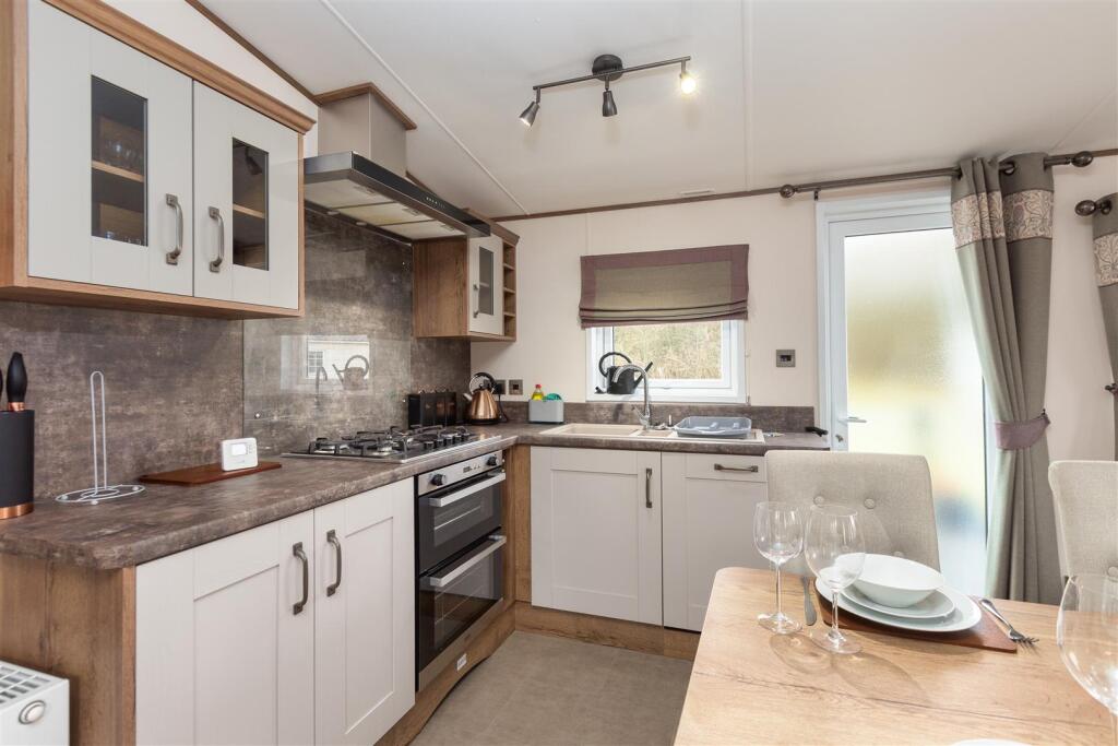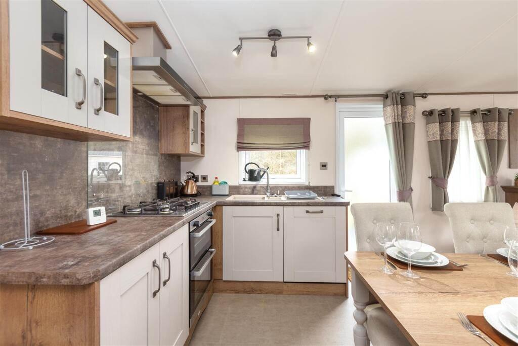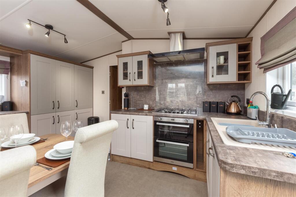 Condition: Based on the provided images, the park home appears to be in excellent condition. It is modern, well-maintained, and shows no signs of wear or needing renovation. The interior is clean, well-decorated, and features modern fixtures and appliances.