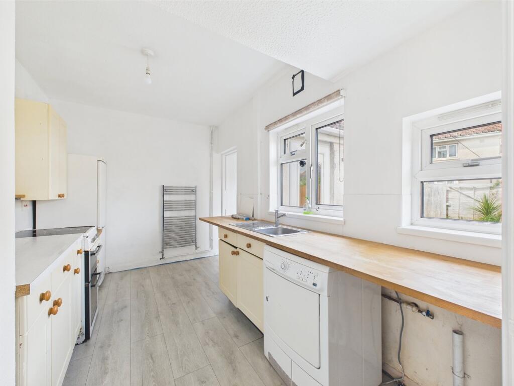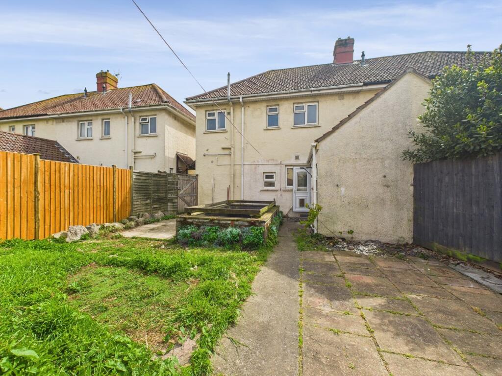 This three-bedroom semi-detached property in Weston-Super-Mare is located on Stradling Avenue, Weston-Super-Mare South. The property benefits from being within a reasonable distance of several schools, including the \‘Good\’_rated Hans Price Academy (0.42km). Weston-Super-Mare railway station is also conveniently located approximately 1km away. The property itself has a garden, though the images suggest it requires attention. Internally, the property shows signs of needing some modernisation and updating. The flooring appears dated in several rooms, and some areas require cosmetic work. The kitchen and bathrooms also appear to be in need of updating.