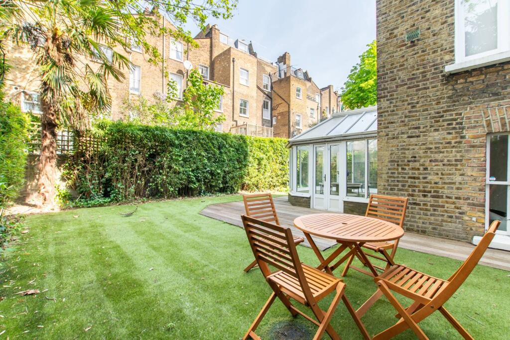 Boasting an impressive garden and conservatory, this wonderful 3 bedroom flat is located within a period conversion on a quiet tree-lined street in North Kensington.