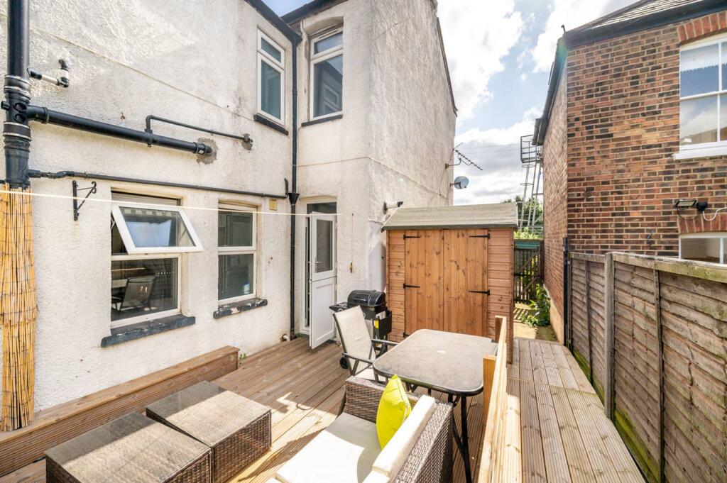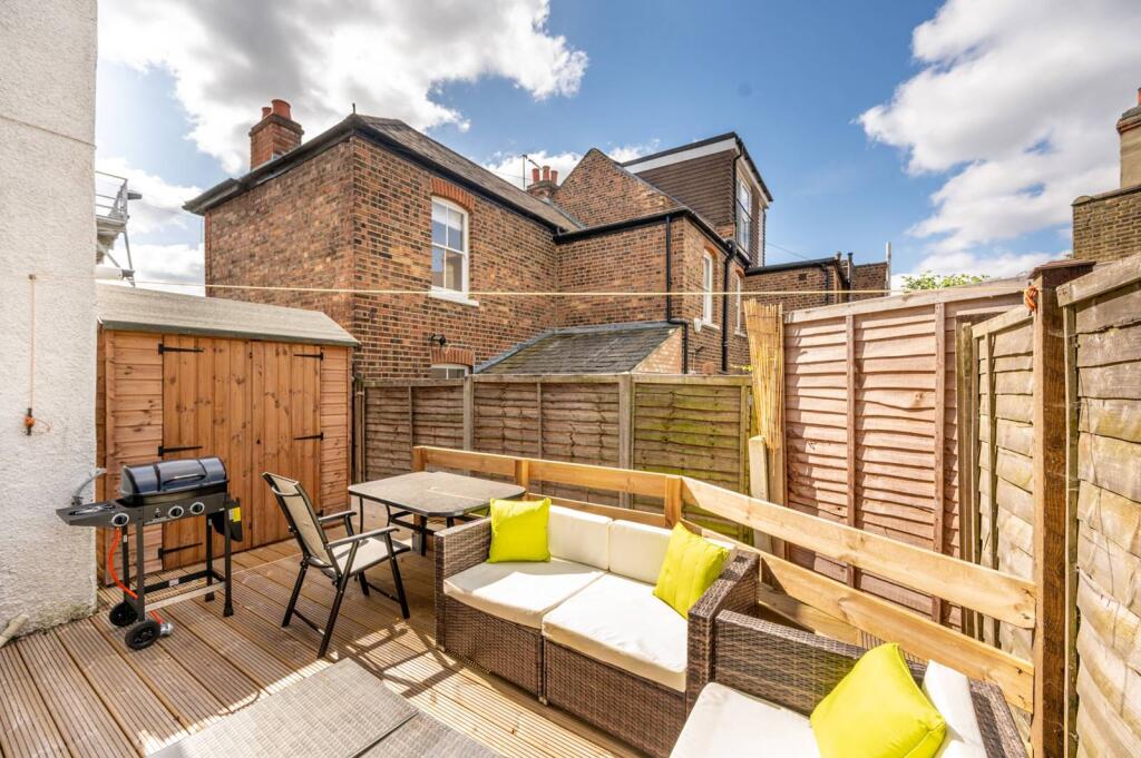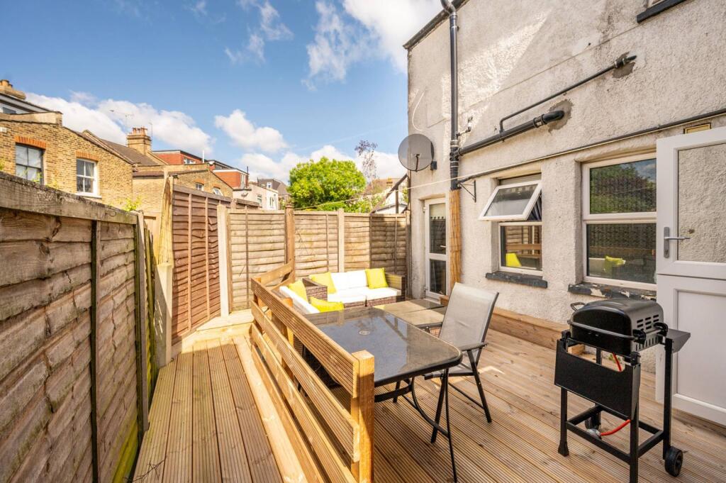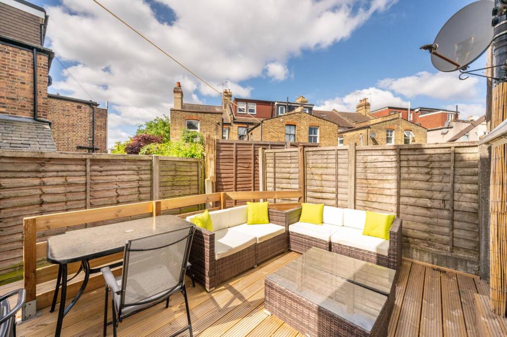 This wonderful 1 bedroom bay fronted property is presented on the ground floor of a charming conversion, offering light filled living and entertaining space with a superb decked garden to the rear.