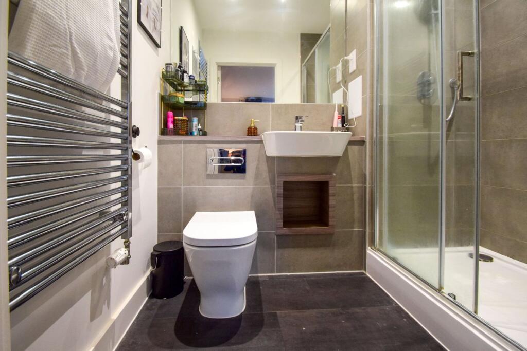 This is a modern two-bedroom, two-bathroom apartment located in Rochester, Kent. The property appears to be in good condition and benefits from its proximity to local amenities, including schools and transportation links. The apartment features modern interiors and a balcony. The asking price is in line with the average property price for the area.