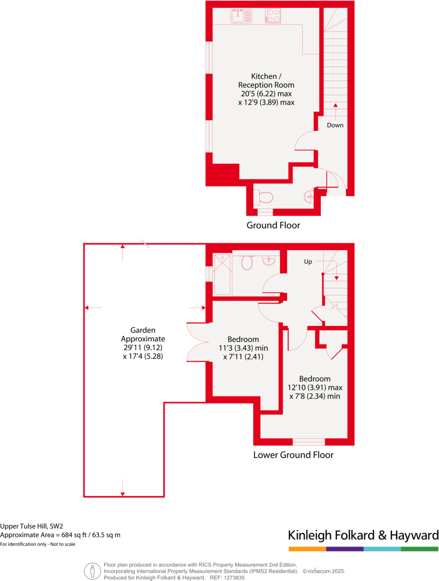 A spacious two double bedroom maisonette arranged across the ground and lower ground floors of this attractive purpose built building. Offering open plan living and a large private garden.