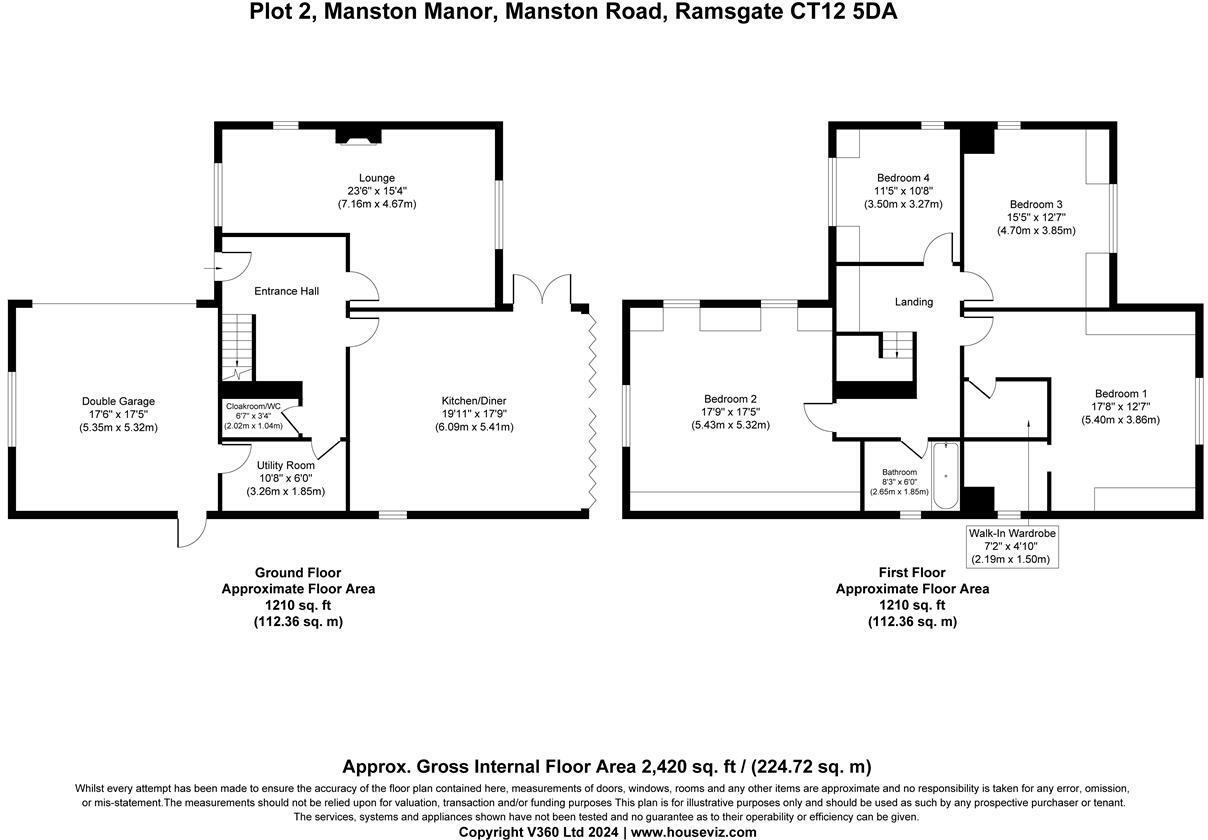 The property is a 4 bedroom detached house located in Ramsgate, Kent. The images show a modern property which appears to be finished to a high standard. It has a double garage and a good-sized rear garden. The location is in a desirable area, with good access to local amenities and transport links. Several good schools are within a reasonable distance. Based on the images, the property is in excellent condition and appears to be newly built or recently renovated. There is no evidence of any required repairs or renovations. The plot size is not specified, however, the property has a good-sized rear garden. Considering the property’s size (2,420 sqft), condition, location, and amenities, the list price of £750,000 seems reasonable compared to the average price per sqft in the area (£340). The average house price in the area is significantly lower at £371,273, but this is likely due to the property being a larger, more modern, and better-equipped home. Nearby comparable properties are listed at similar prices.