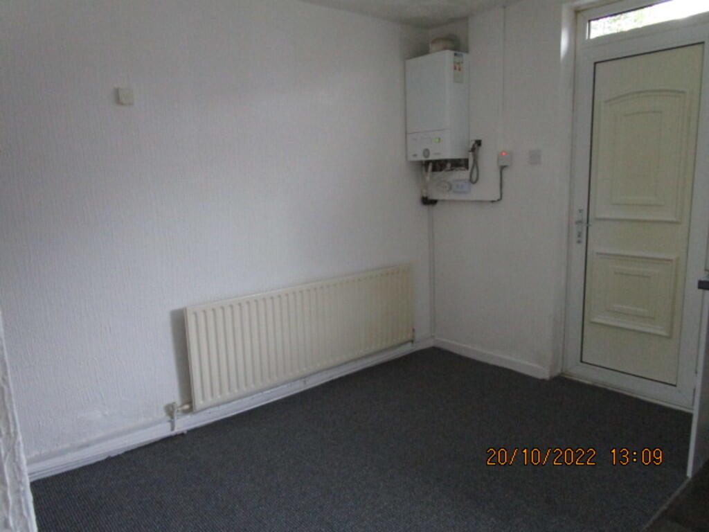 A spacious mid terrace house comprising: Entrance hall, lounge leading to dining area with fitted kitchen, understairs storage, bathroom, two double bedrooms, front and rear gardens, d/glazed, partial central heating. CARPETS ONLY