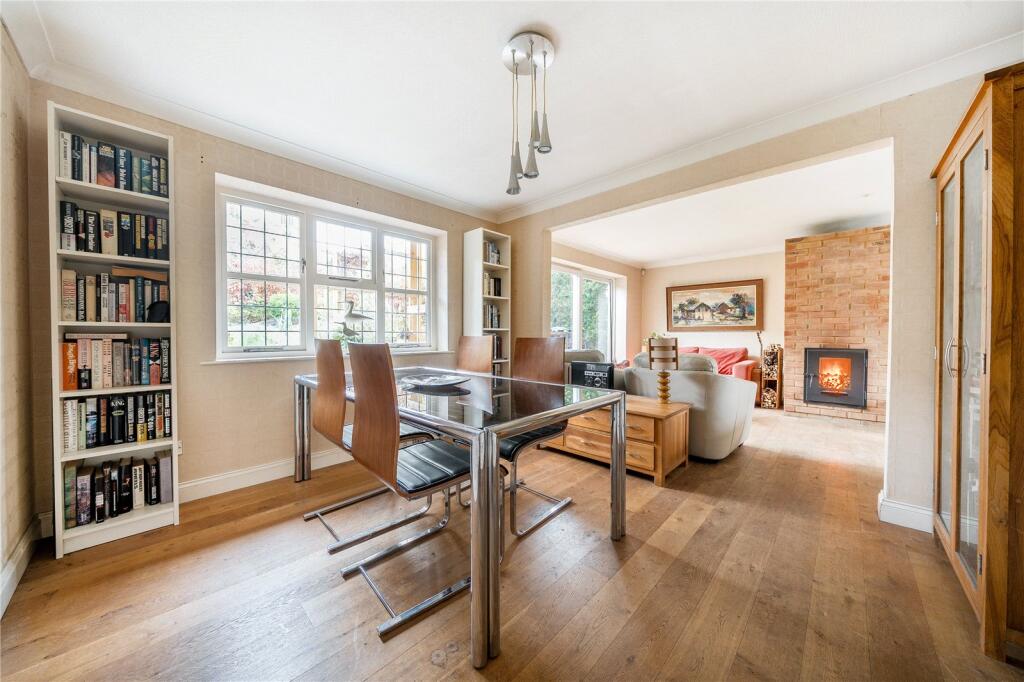 This is a detached property located on Church Street, Cottingham, Market Harborough, Northamptonshire. It features four bedrooms and three bathrooms. The property is listed by Savills for £575,000. The location is in a rural village setting, with a primary school nearby. The property appears to be in generally good condition, with a modern kitchen and bathrooms, but some areas could benefit from updating. The garden includes a patio, greenhouse, and a gazebo that needs some maintenance. The price seems slightly high compared to the average in the area, but the property’s features justify a higher price point. The property has a garage.