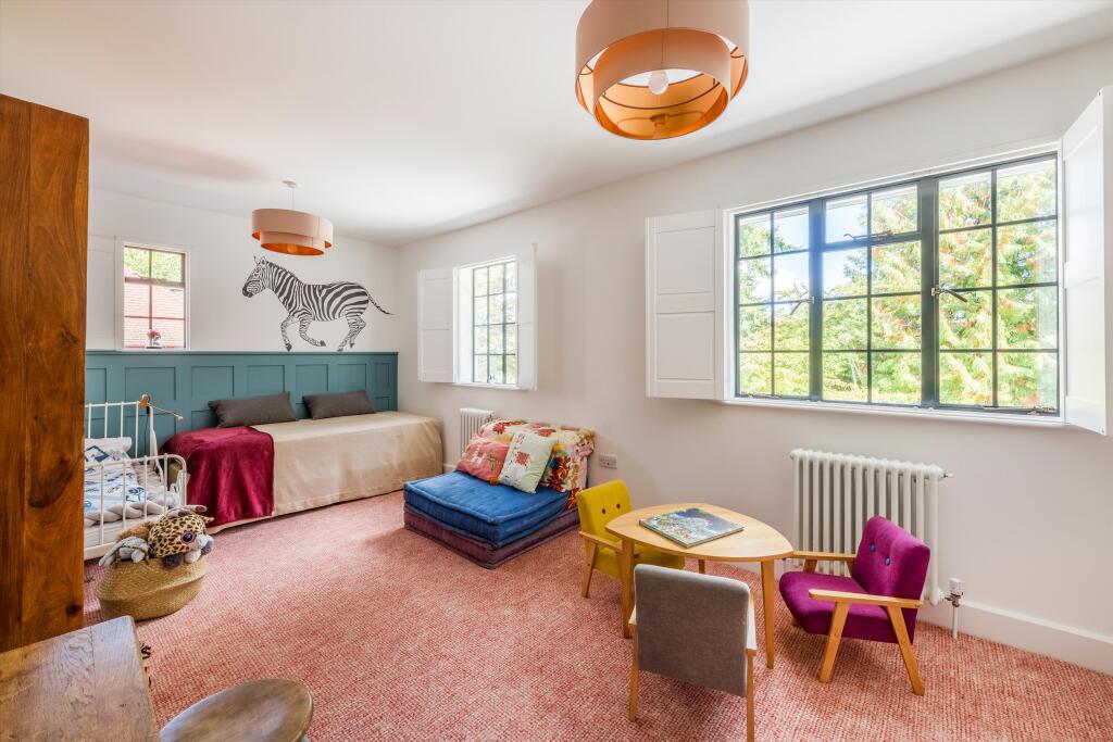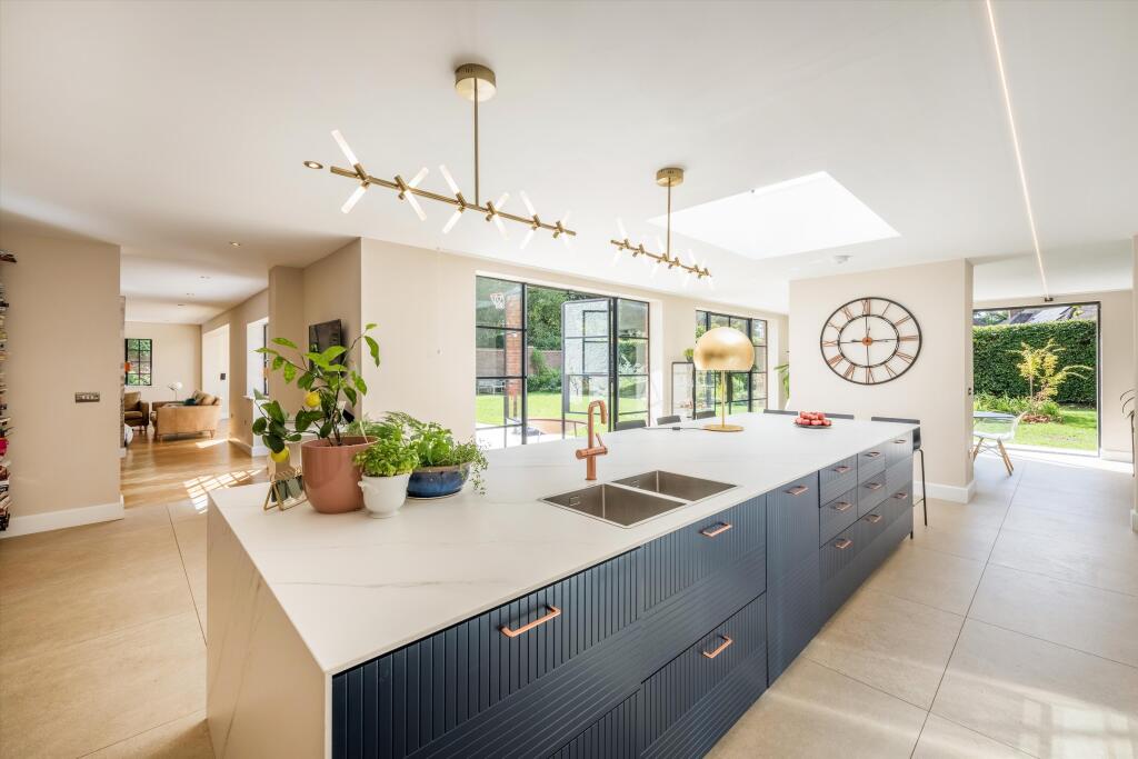 This is a detached property located on Grassy Lane, Sevenoaks. It features 5 bedrooms and 4 bathrooms. The property is listed with Knight Frank. The house appears to be in very good condition, with a modern interior and a well-maintained garden. The location is desirable, with good access to schools and transport links. However, the listing price of £3,000,000 seems high compared to the average price of similar properties in the area.