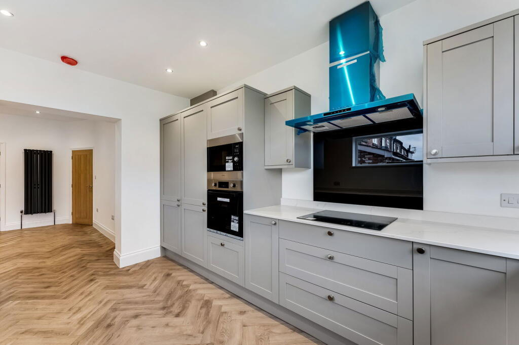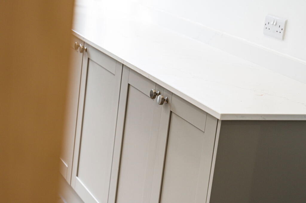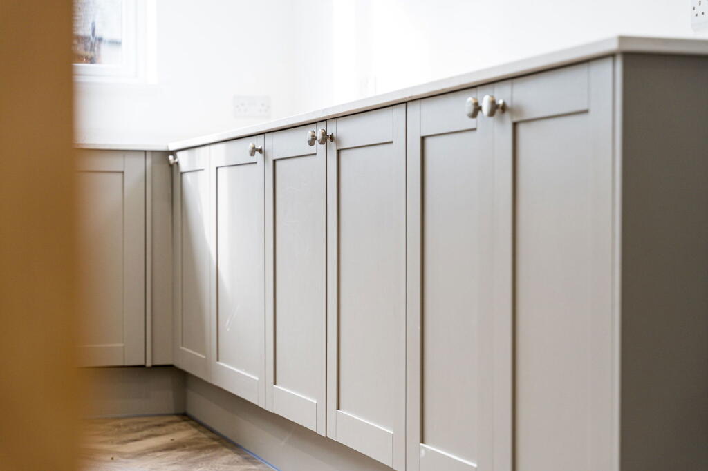 The property has clearly undergone a complete renovation. The interior is presented in excellent condition, with a modern, stylish kitchen and bathroom. The flooring and decor throughout are contemporary and high-quality. The images show no evidence of damage or disrepair. This suggests an excellent condition score.