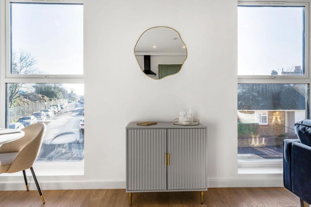 This two-bedroom, one-bathroom property located on Springbank Road in Hither Green, Lewisham, presents a modern and well-maintained living space. The property’s interior showcases a contemporary design with recently updated kitchen and bathroom fixtures, which are presented in excellent condition in the provided photographs. The open-plan living area benefits from ample natural light. The pictures reveal a well-designed layout that maximizes space effectively. The building itself has a modern architectural style. The location is a key strength, offering easy access to Hither Green station with its convenient Southeastern rail links into central London. Nearby schools receive outstanding Ofsted ratings, making it appealing to families. However, a major drawback is the complete absence of a garden or any significant outdoor space. The provided data lacks sufficient comparable sales information on square footage, but the list price of £450,000 appears to be within the range of similar properties in the area, although the lack of land could be a factor in negotiations. Overall, this property represents a modern, well-maintained, and conveniently located living space but lacks outdoor space, which could influence buyer preferences.