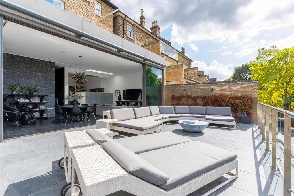 This is a large, detached house in a desirable location in London. The property has been modernised and is in good condition. It benefits from a large garden with a patio, a putting green, and an outdoor kitchen. The property is close to schools and transportation. The listing price is high, but reflects the size, location, and condition of the property.