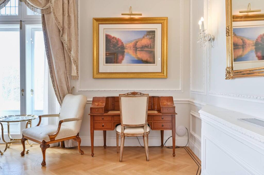 Set in a striking period building opposite Kensington Gardens and Hyde Park, this truly impressive 6 bedroom apartment features sumptuous décor, high ceilings, en suite facilities and an exceptionally generous interior.