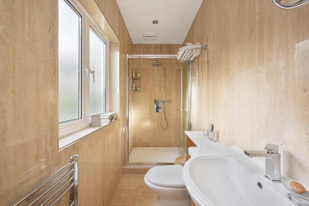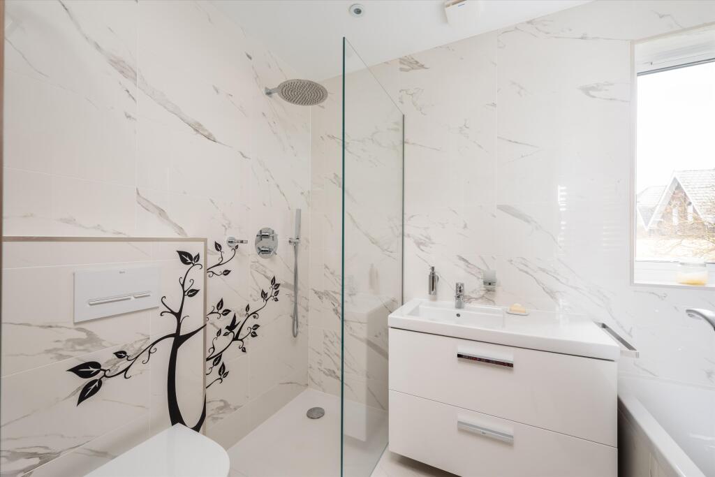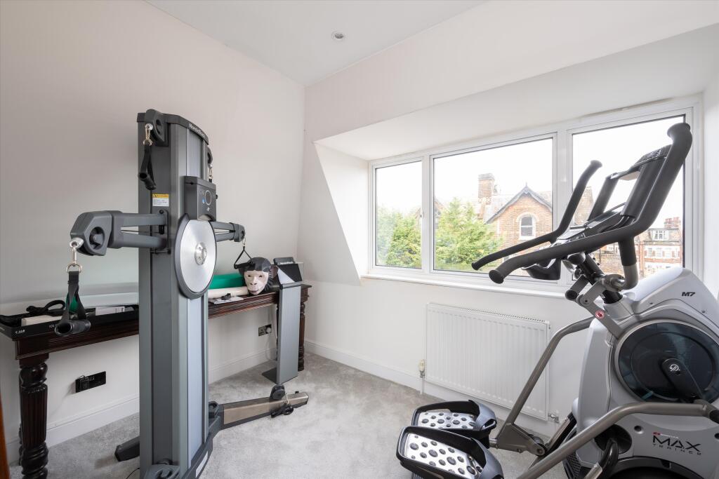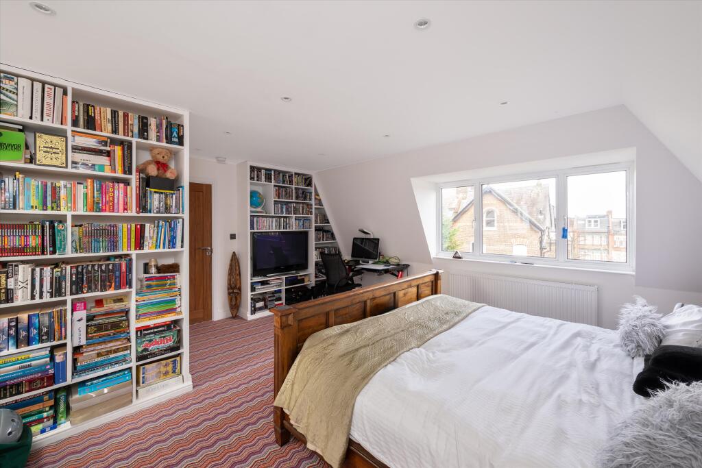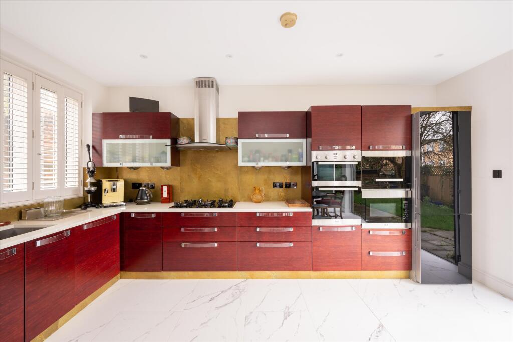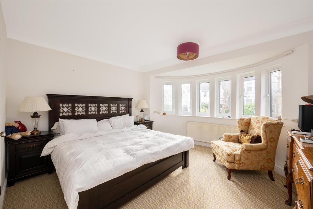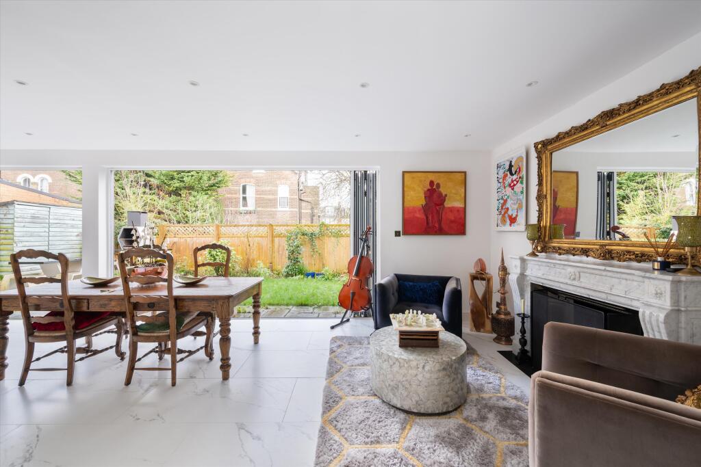 A detached 5 bedroom house for sale on Cholmeley Park, Highgate A spacious five-bedroom detached home on a leafy road in Highgate. This gated property, surrounded by brick walls, offers discrete and private living. The spacious entry hall has a bespoke staircase with bookshelves from the groun...