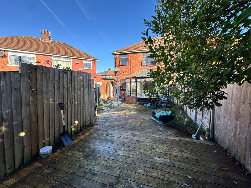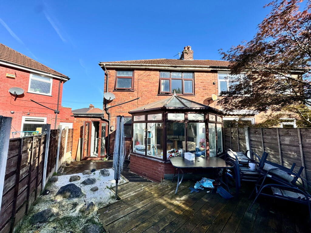 This is a three-bedroom semi-detached property located in Reddish North, Stockport. The house benefits from a modern kitchen and generally well-maintained interior. It features a conservatory and a garden that is mainly decked. The property is situated within a reasonable distance of local schools and transportation links, making it suitable for families and commuters. While the garden could benefit from some improvement, the property appears to be in good overall condition. The asking price of £300,000 seems reasonable given the size, location, and condition of the property, although potentially a little high compared to the average price per square foot in the area. The property offers a blend of modern living with traditional features and is likely to appeal to a range of buyers.