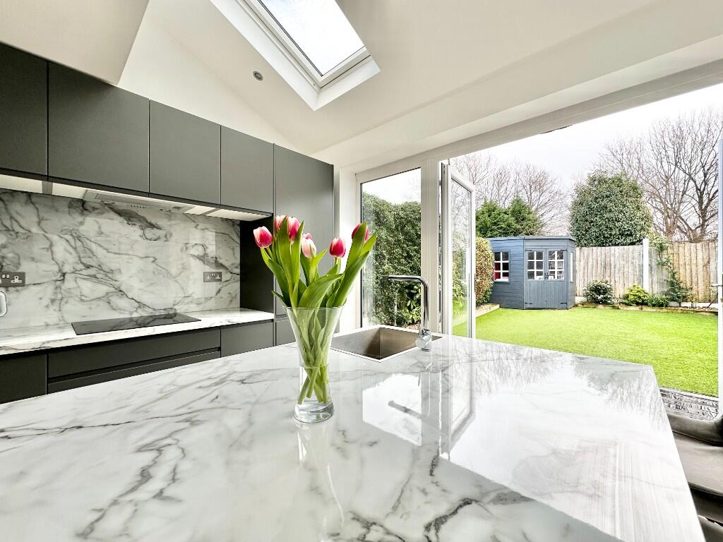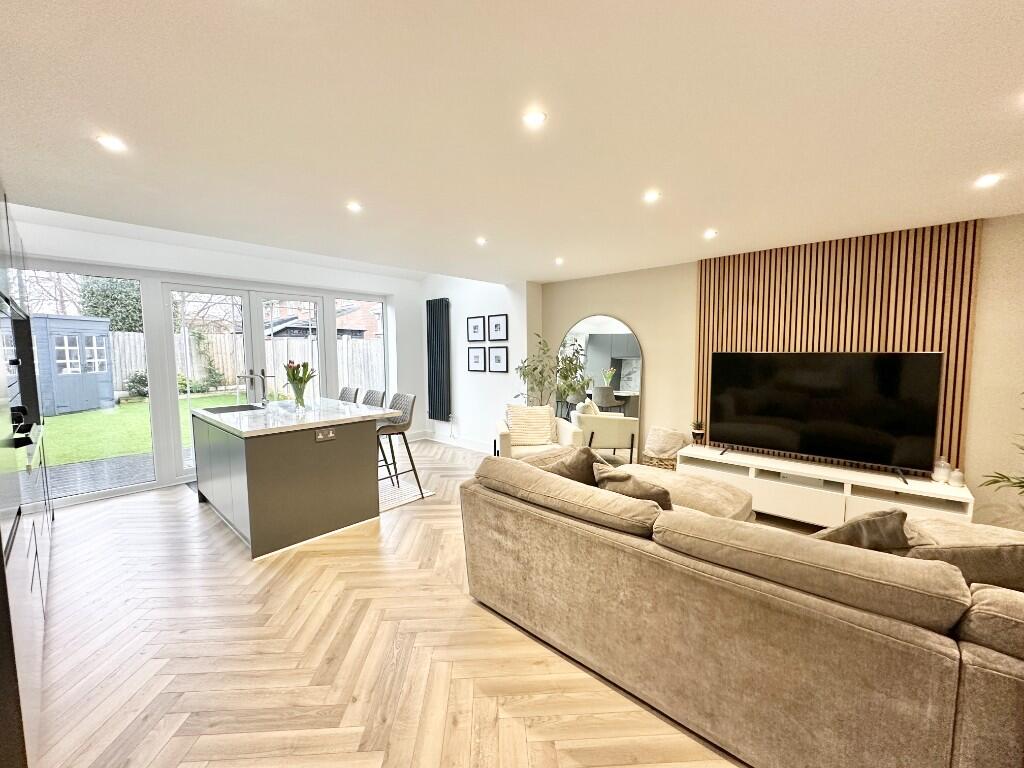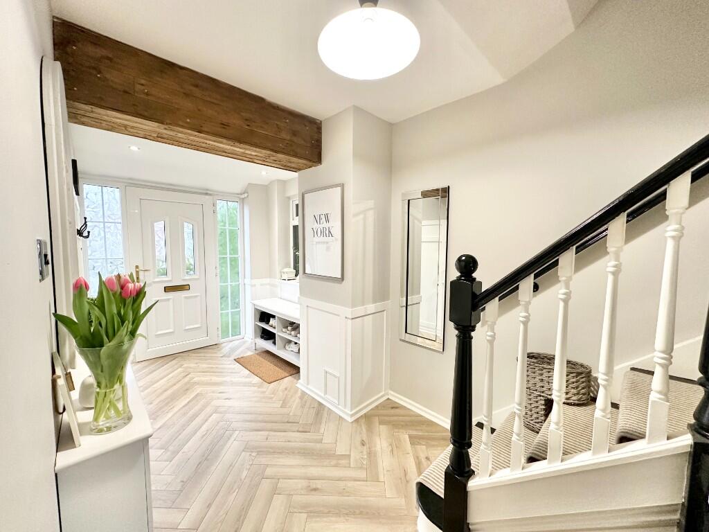 This immaculately presented end-terrace home offers a perfect blend of modern living and stylish design. Upon entering, you are welcomed by a spacious entrance hall featuring a beautifully panelled cloak area, setting the tone for the rest of the home.