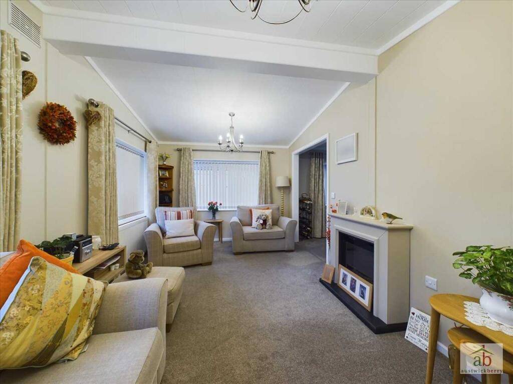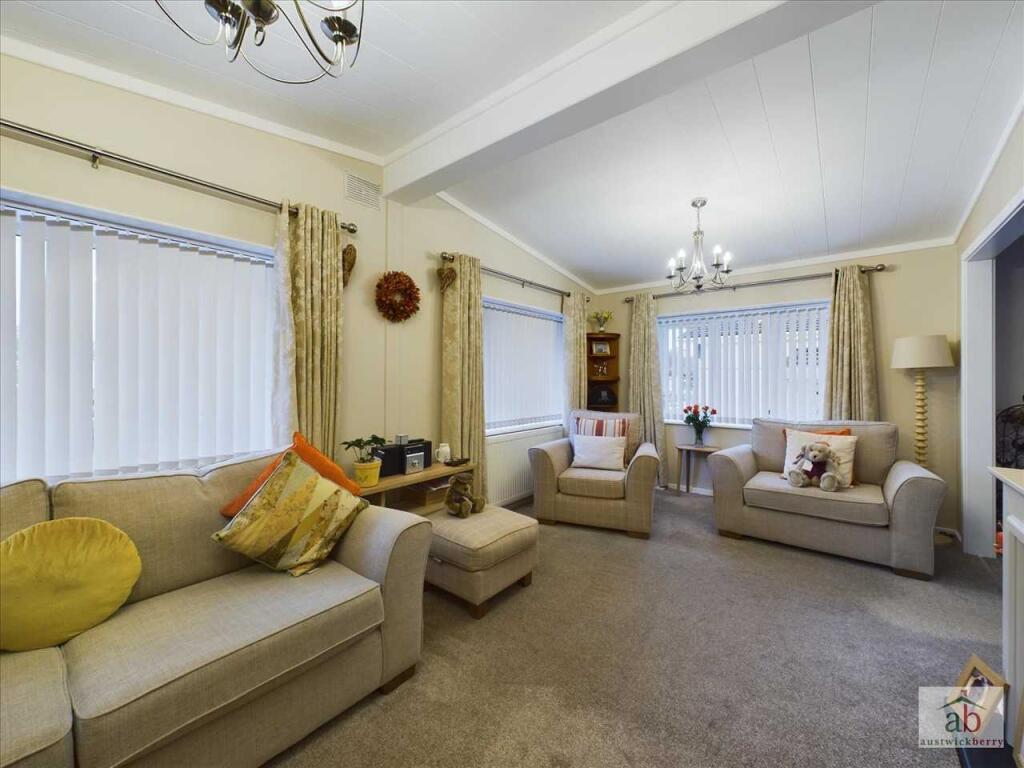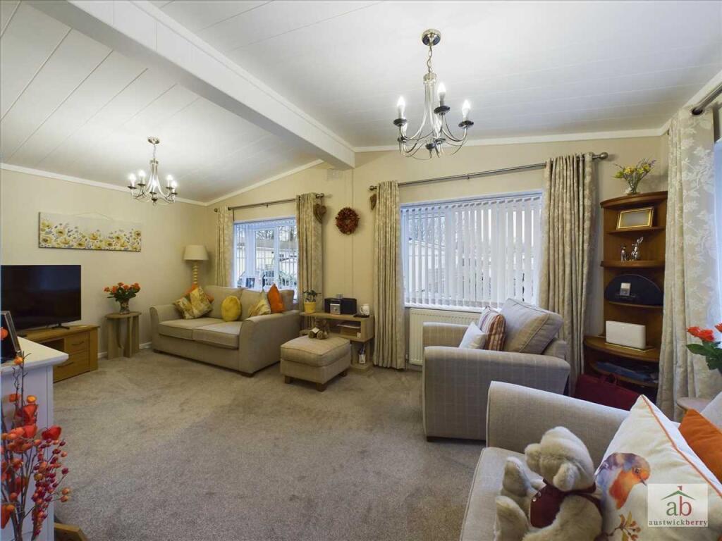 A beautifully presented TWO BEDROOM detached park home built in 2018 with an excellent sized driveway, detached garage and views over greensward to side aspect. This superb family home comprises of an entrance hallway with a large lounge, separate dining room, fitted kitchen, luxury (cont.)
