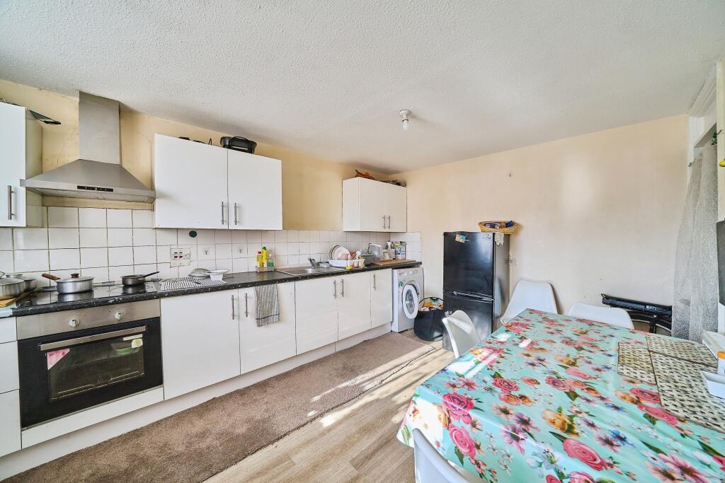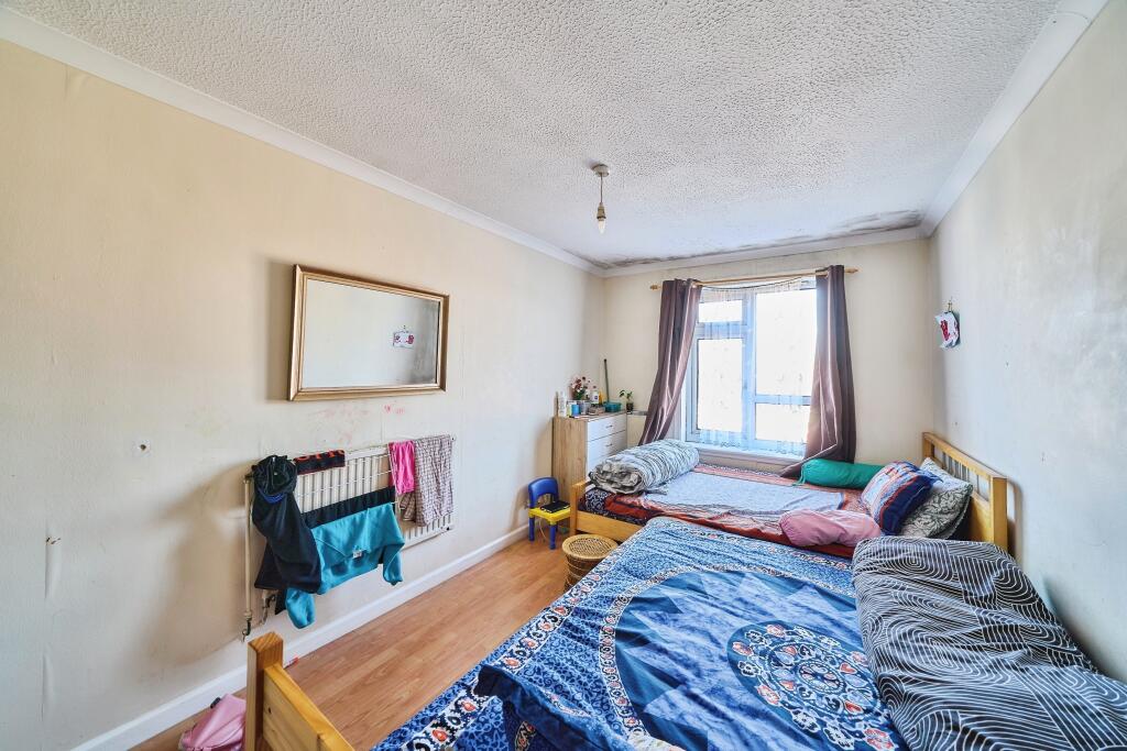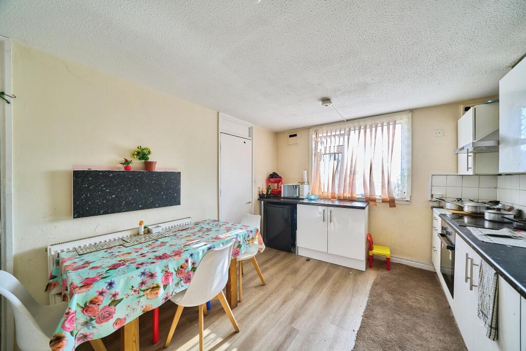 This maisonette is located in Feltham, West London, close to Feltham train station providing convenient access to London. The property is within a short distance of several schools, including Reach Academy Feltham which has an outstanding Ofsted rating. The property itself appears to be in need of some modernisation and updating. The kitchen and bathroom show signs of wear and tear. While the property has a small plot of land, it is not extensive. Compared to other properties in the area, the list price of £290,000 seems slightly below average, potentially reflecting the need for modernisation. However, the lack of sqft data for nearby properties makes a precise comparison difficult.