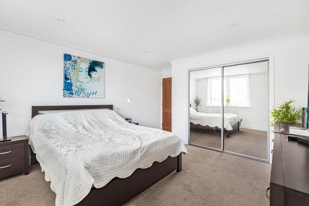 This property is a two-bedroom, two-bathroom flat located in the desirable Beckenham area of Bromley, London. The flat is part of the Langley Waterside development, which benefits from a picturesque waterfront setting and well-maintained communal grounds. The interior is modern and well-presented, with a contemporary kitchen and bathrooms. The property also includes a private balcony offering views over the water. Transport links are good, with Eden Park station within easy reach. Several highly-rated schools are also located nearby. The list price is below the average price for the area, but it is important to note that the average property size is significantly larger. The lack of plot size information makes a definitive statement on land difficult, but the communal grounds and waterfront views are a significant benefit.