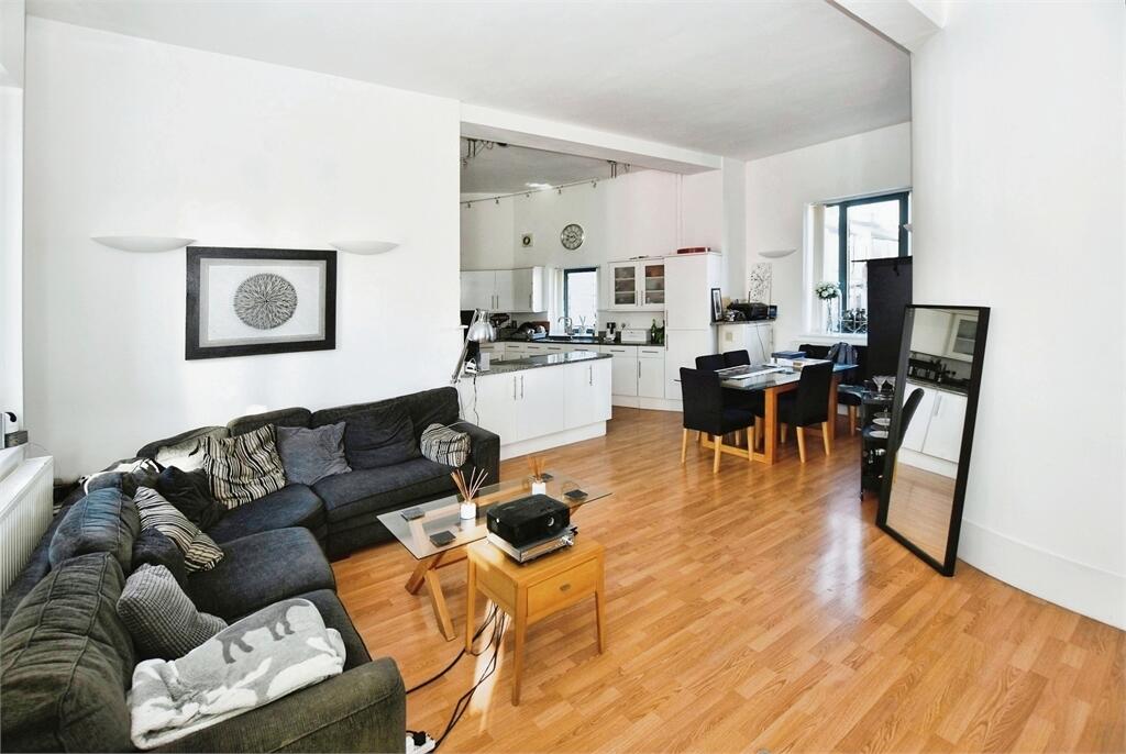 A spacious first floor apartment offering stylish accommodation. The double glazed and centrally heated property features entrance hall with intercom system, open plan lounge/kitchen with balcony and modern fitted kitchen with integrated appliances, 2 double bedrooms, bathroom and allocated parking