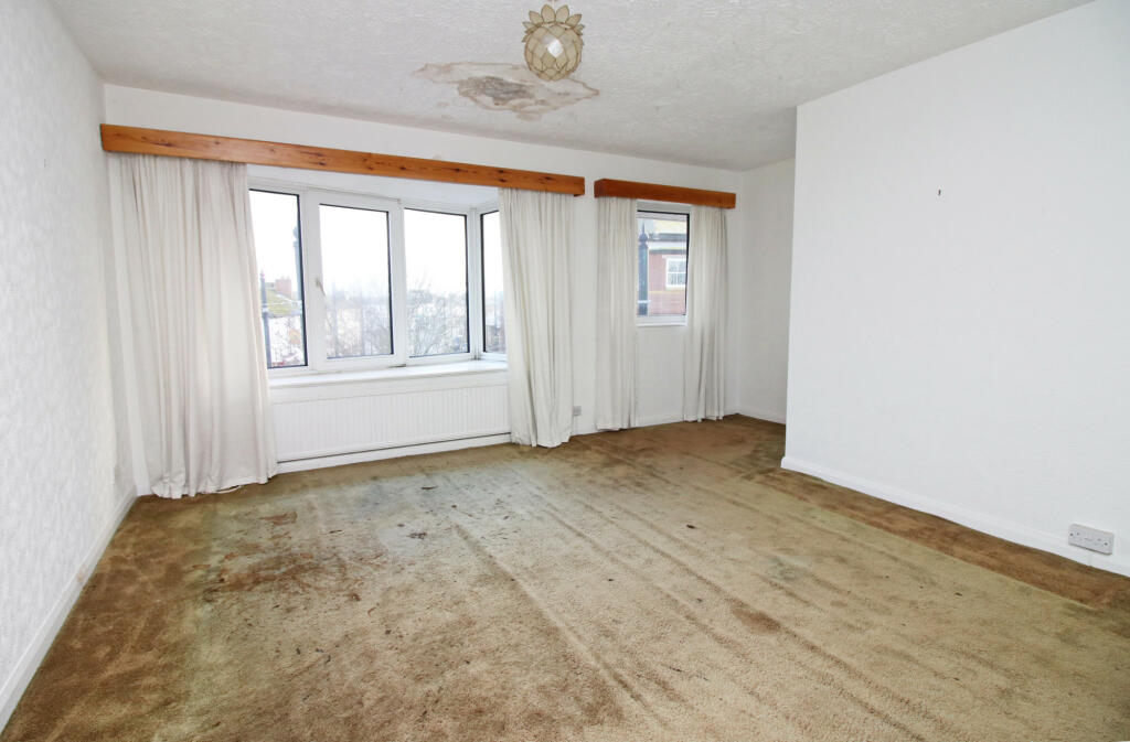 However, the property’s condition requires considerable attention. The provided photographs reveal dated decor, worn carpets, and visible water damage to the ceiling. A full renovation would likely be necessary to bring the apartment up to modern standards. The lack of a private garden or outdoor space is a significant drawback for many buyers. The apartment’s size, at 601.81 sqft, is modest but typical for a two-bedroom apartment in this area. The price point seems reasonably competitive compared to other similar properties in the area, especially considering the no-chain aspect mentioned in some listings, though the need for significant modernisation must be factored in. Potential buyers should carefully weigh the renovation costs against the property’s location and amenities before making a purchase decision. A thorough survey is highly recommended to assess the extent of any structural issues and to accurately gauge the cost of refurbishment.