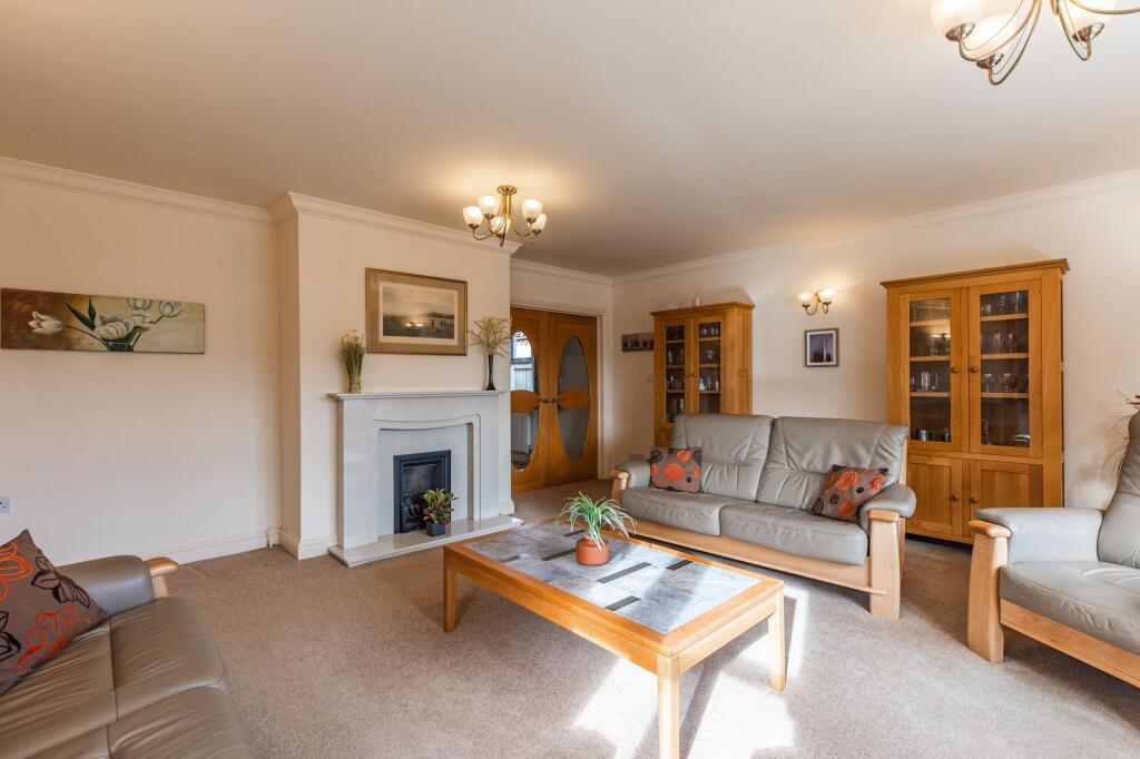 An extremely spacious four-bedroom non-estate detached bungalow set in a small exclusive development of three bungalows. The property has been well maintained and has a double garage with a workshop, plenty of storage and a west-facing garden.