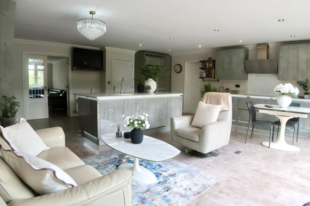 Exuding luxury & sophistication, this exceptional 4-bed detached bungalow epitomises modern elegance. Open-plan living, x4 double bedrooms, x4 bathrooms, master suite & balcony, outdoor entertaining.