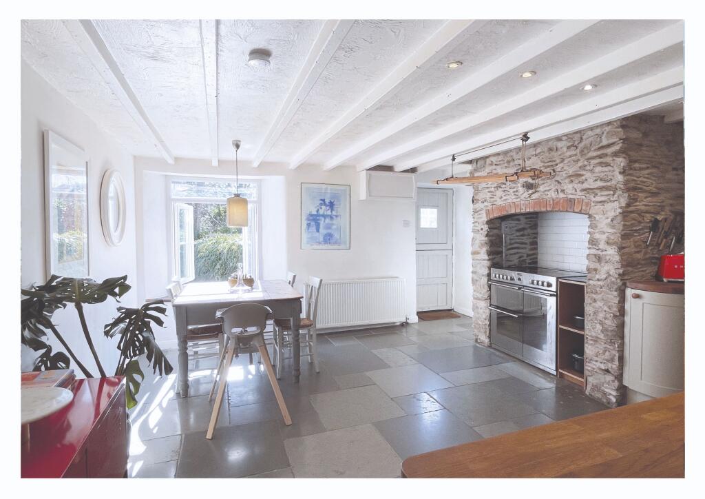 Wonderful end-terrace character cottage in historic part of choice village close to beaches with south-facing garden, conservatory, generous kitchen-diner, utility room, cosy lounge with inglenook fireplace, outside storage for bikes and surfboards, double-glazing throughout, recently updated.