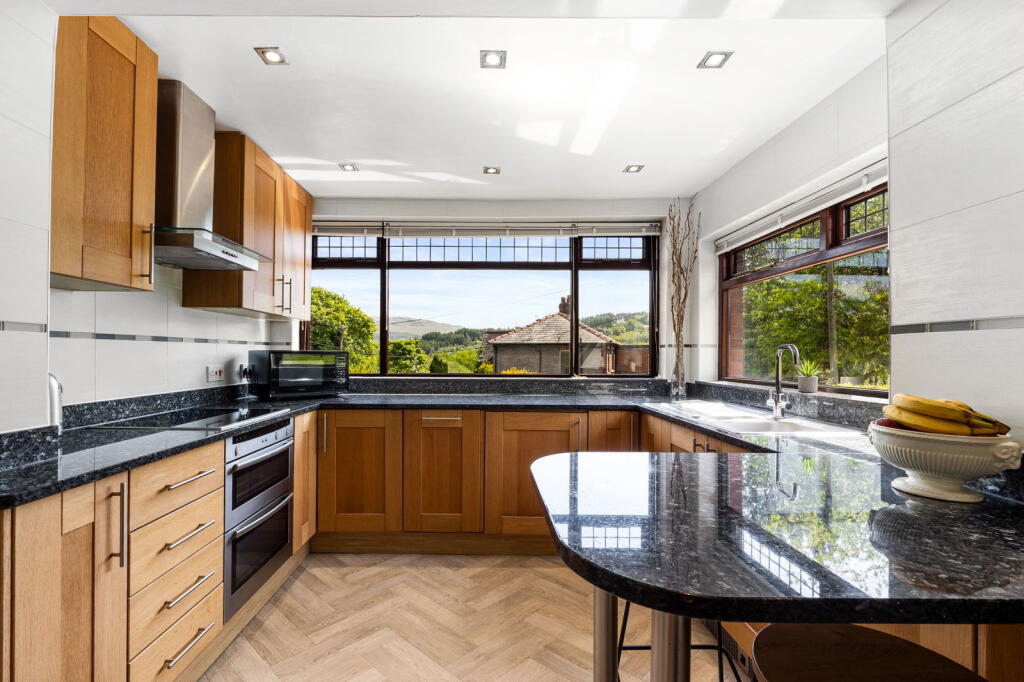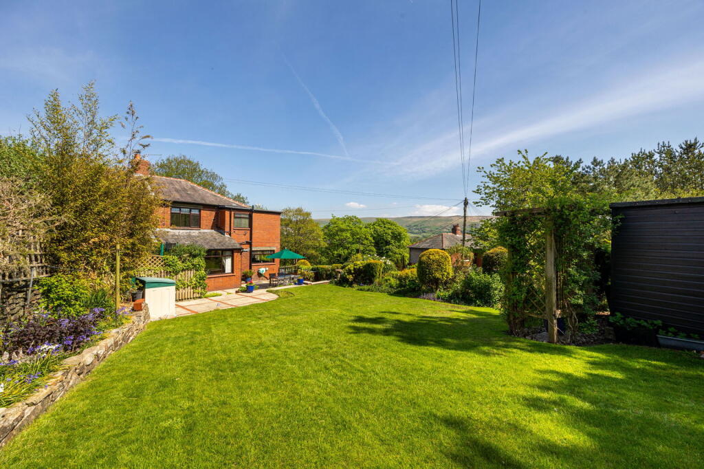Discover this stunning four-bedroom property that is truly a gem, featuring a remarkable private south-west facing garden and breathtaking views of the picturesque Saddleworth countryside, including the iconic Pots and Pans.