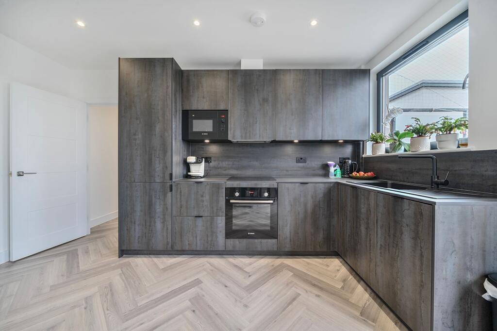 Stylish 1-bed apartment in vibrant high street location. Modern design, private balcony, integrated kitchen, natural light, tranquil bedroom, contemporary bathroom. EPC: B (82), Council Tax Band C.