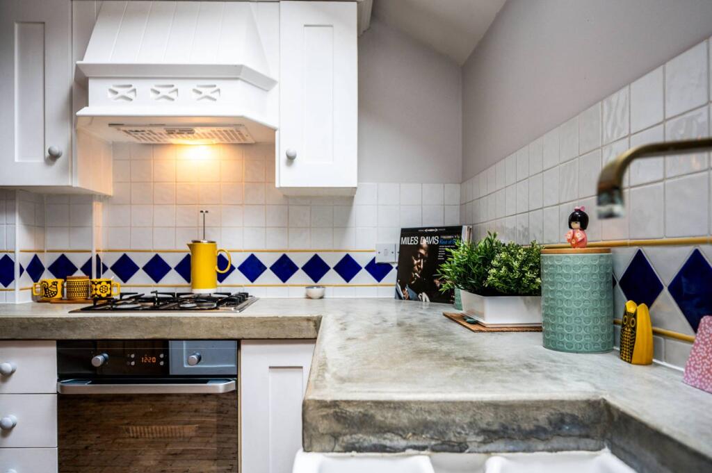 The property appears to be in good condition. The images show a recently renovated or well-maintained interior with a modern kitchen and bathroom. There is no visible evidence of significant repairs needed. The property benefits from a small, manageable garden, adding to its appeal.