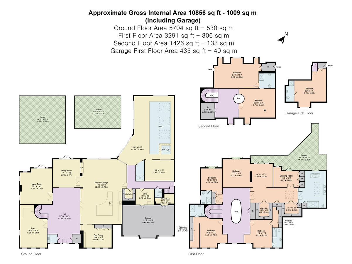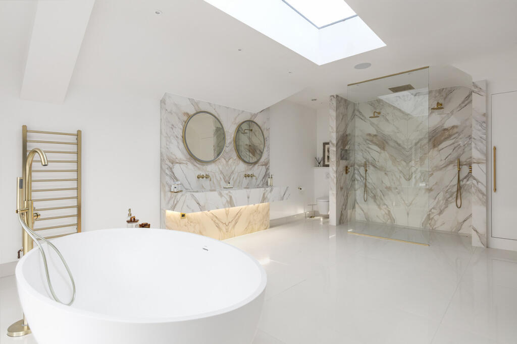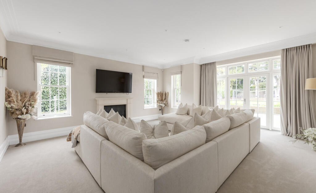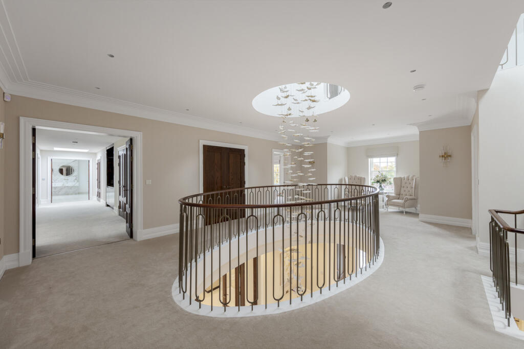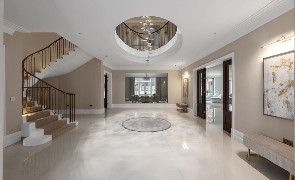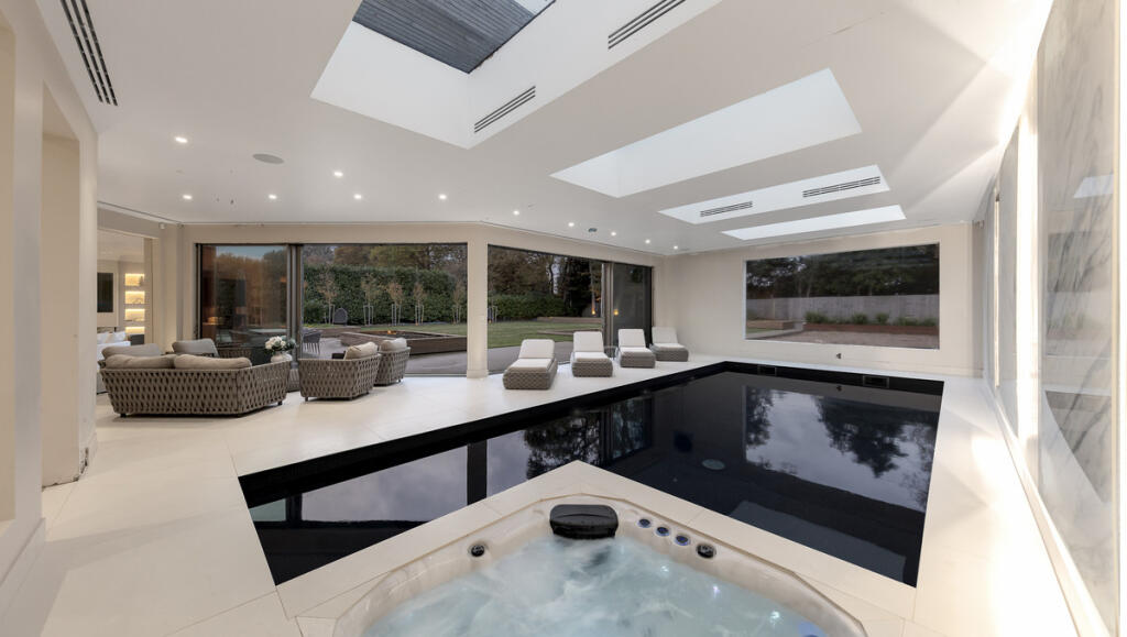 This is a substantial detached property located in a sought-after area of Surrey. The house features seven bedrooms and seven bathrooms, making it ideal for a large family. The interior is modern and well-maintained, with high-end fixtures and fittings. A standout feature is the indoor swimming pool and gym. The property also benefits from a large garden and a triple garage. Kingswood railway station is within walking distance, providing easy access to London. The asking price is high, but reflects the property’s size, condition, and location.