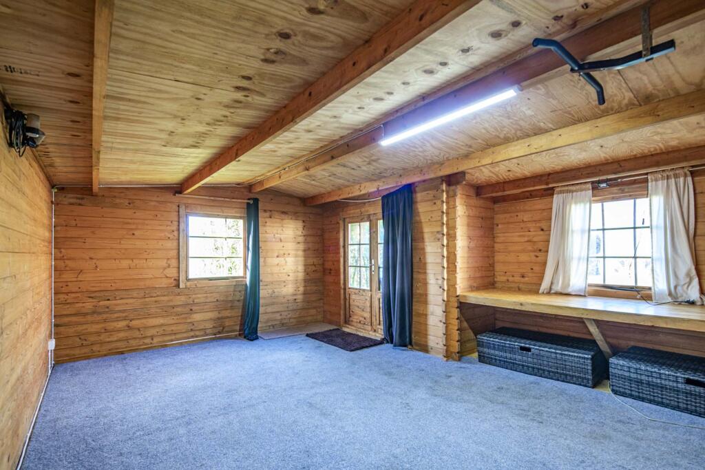 Quietly tucked away on the fringe of this delightful riverside village overlooking the adjoining open farmland, a detached 3 bedroom bungalow set in lovely gardens and with private driveway and detached log cabin .