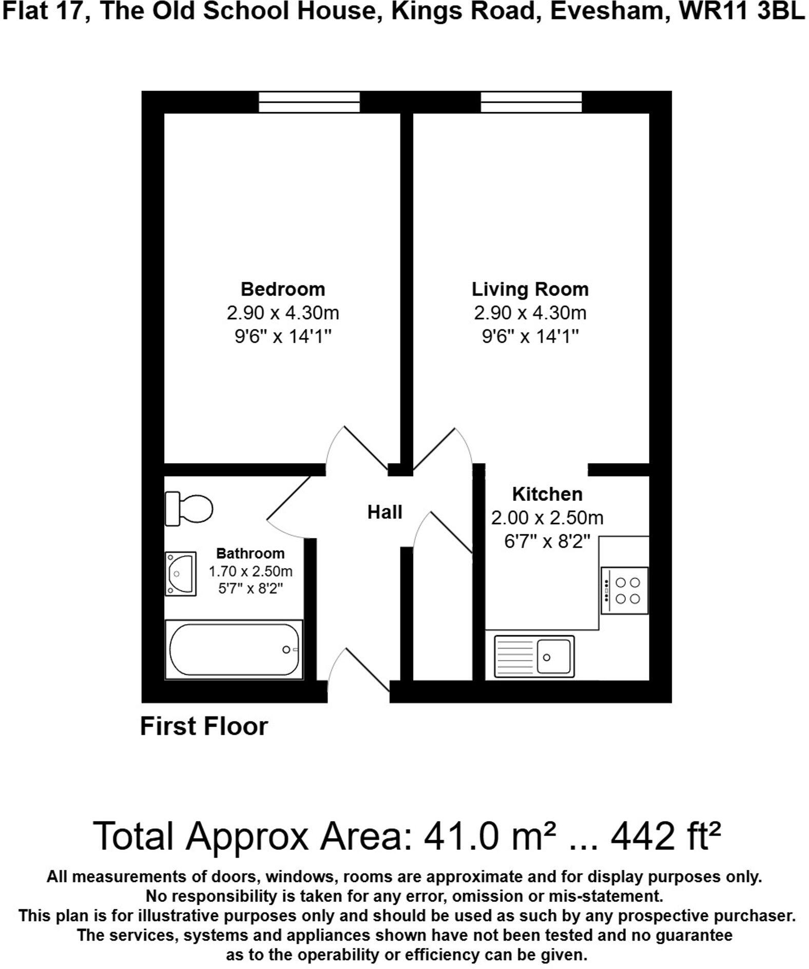 This is a one-bedroom flat located in a converted school building on Kings Road, Bengeworth, Evesham. The property offers 441 sqft of living space. The location is near local schools and transportation. While the interior appears to be modern, the bathroom could use updating. The flat has minimal land. However, the asking price of £90,000 seems reasonable, especially when compared to the average price per square foot in the area.