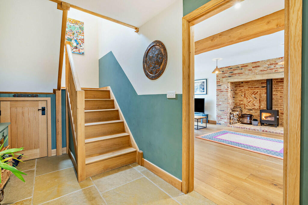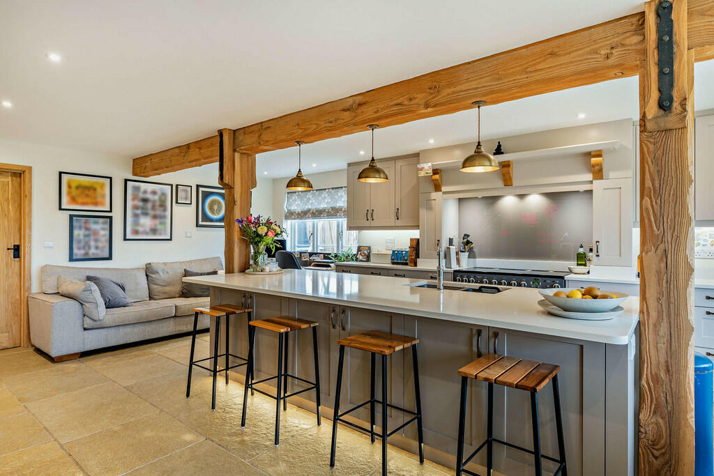 Stunning home with 4 bedrooms, 3 bathrooms, large kitchen/dining/family room, spacious living room with inglenook fireplace with wood burner and study area, separate utility room & pantry. Double garage & off street parking. Good sized garden & views across fields towards windmill.