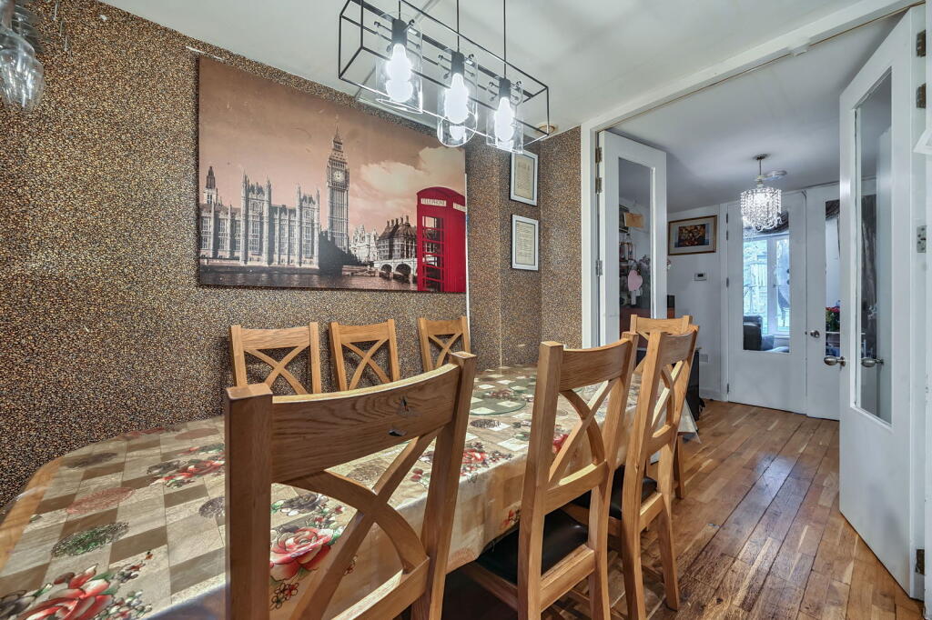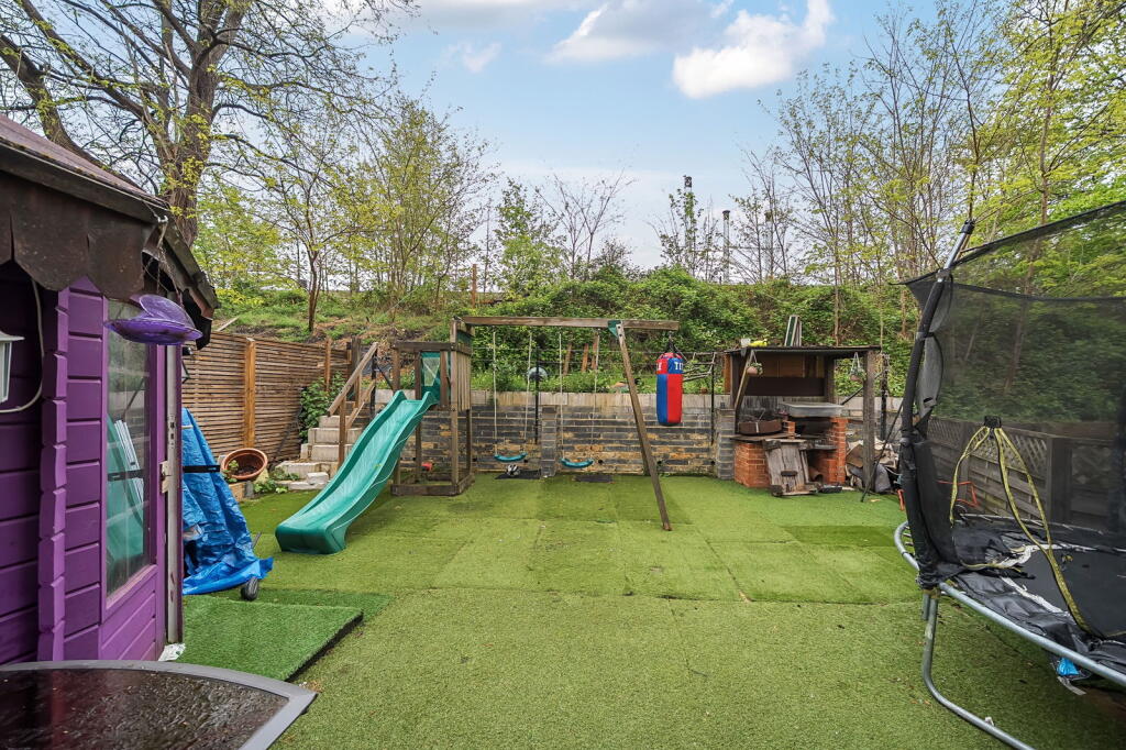 The property is located in Sheeling Close, Aldershot, GU12 4BU. It is a terraced house with 5 bedrooms and 2 bathrooms, and a total area of 2,518.76 sqft. The list price is £499,999. The property benefits from a good location, with several schools within a reasonable distance and convenient access to public transportation. Based on the provided images, the property appears to be in generally good condition, although some aspects of the interior decor might be considered dated. The kitchen shows signs of age and could benefit from some modernisation. The property has a small garden with artificial turf, a trampoline, and a play area. The size of the garden is relatively small compared to other properties in the area. Considering the list price of £499,999, the average price in the area is £331,966, and the average price per sqft is £412. This property is significantly larger than average at 2,518.76 sqft. The list price is higher than the average house price in the area, but given the size and number of bedrooms, it may be considered reasonable, provided the condition of the property is carefully assessed. Nearby comparable properties are listed at prices ranging from £275,000 to £525,000, providing some context for the listed price. However, the lack of sqft data for these comparable properties makes a direct comparison difficult.