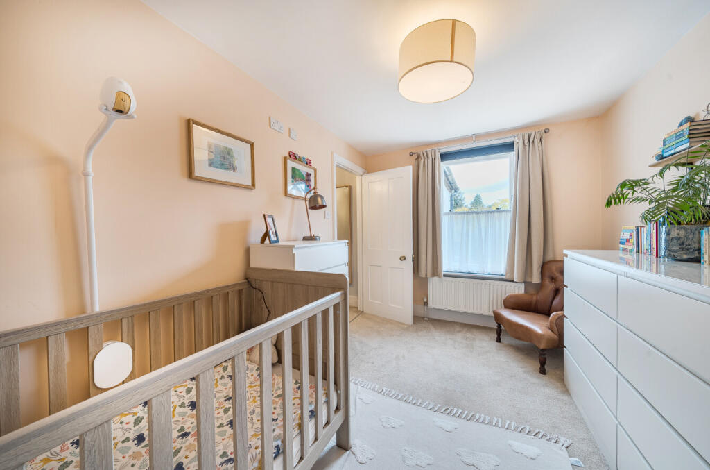 This is a two-bedroom terraced house located on Stamford Road in Nascot Wood, Watford. The property is in good condition, with a modern kitchen and bathroom. It features a garden with a patio and lawn. The property benefits from close proximity to Watford Junction station and several well-regarded schools. The property includes a basement which could be used as a study or office space. The list price is £575,000, which is slightly above the average for the area, but may be justified by the property’s condition and features.