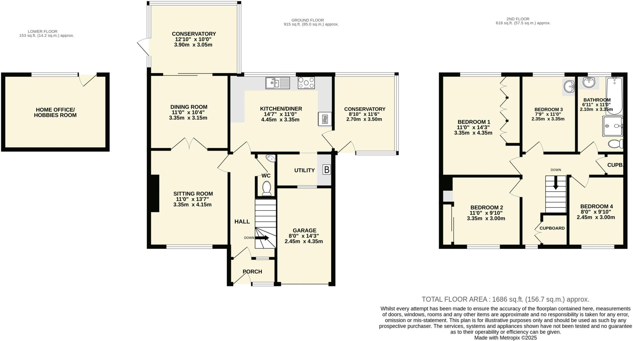 A conveniently situated four bedroom detached house, enjoying pleasant views to the surrounding hills and having an easy to manage garden along with an integral garage and large workshop.