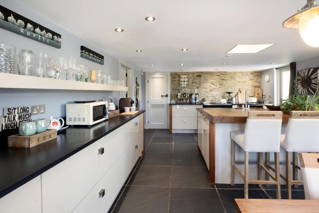 This property is a charming detached house located in Lamerton, Devon. The house appears to be well-maintained and has been recently renovated, blending modern amenities with traditional character. The property benefits from a large garden and outbuildings, offering significant space. The location is rural but convenient, with a primary school within walking distance and other amenities a short drive away. While the lack of square footage data prevents a precise price per square foot comparison, the list price seems high relative to the area average, though comparable properties in the vicinity support a higher price point. The property is likely to appeal to buyers seeking a spacious, well-presented home in a peaceful setting.