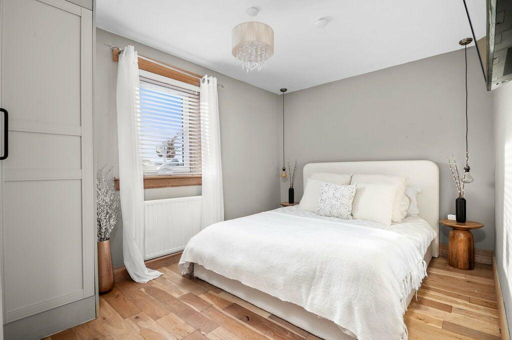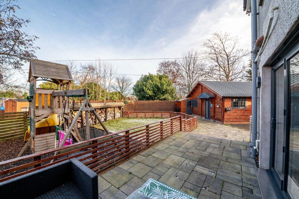 This 3-bedroom semi-detached villa in Larbert, FK5, is presented as a well-maintained family home. The property boasts a recently updated interior, with a modern kitchen featuring a large island, sleek cabinetry, and ample counter space. The bathrooms also appear recently updated and are stylish. The interior styling is contemporary. The property benefits from a good-sized rear garden that is largely paved but includes several outbuildings, such as a substantial detached garage and what appears to be a workshop. The exterior of the property looks to be typical of houses in the area, and although in need of some maintenance, appears generally well kept. The location is convenient for access to Larbert train station, offering reasonable links to other areas. However, it is important to note that further research into the availability of local amenities and schools, as well as a detailed survey on the property is advised before any potential purchase. The pricing of £235,000 appears comparable to other houses in the immediate area although several nearby streets have a very varied house price. A detailed review of the property is recommended by a qualified surveyor before purchasing.