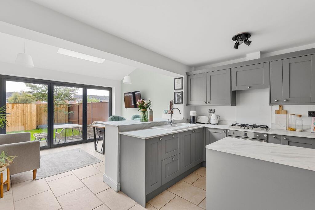 Three bedroom semi-detached offered in turn-key condition. Featuring an extended garage with utility room, ground-floor WC, modern open-plan kitchen, recently fitted bathroom and enclosed rear garden.