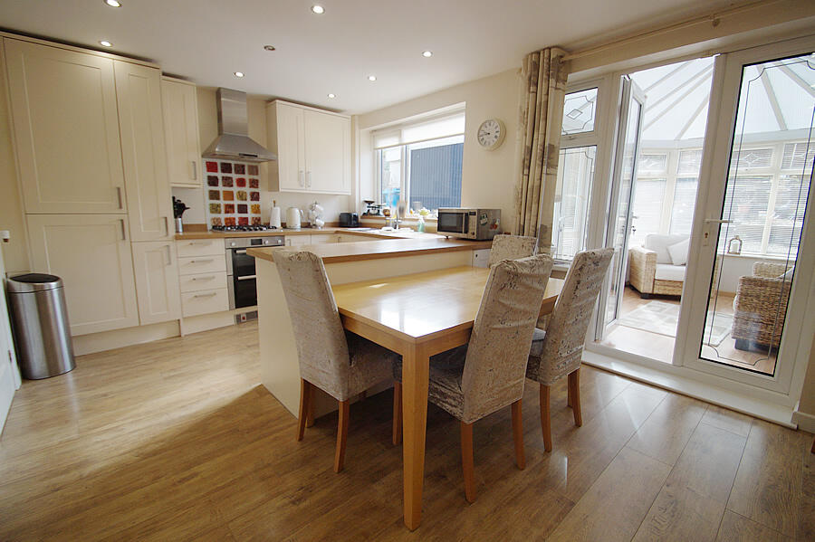 This beautifully presented property comes with a garage, long driveway for additional parking, and a large garden at the rear. The property also benefits from an open plan kitchen/diner, a downstairs WC, a conservatory, and bay windows to the front. It is ideally located in the sought after area of