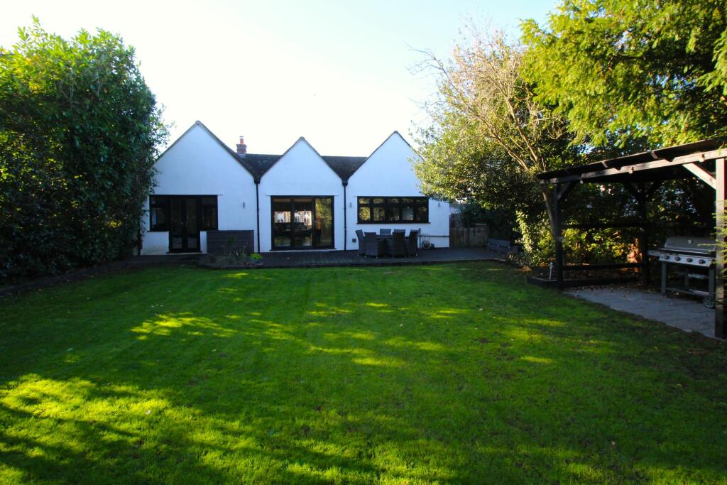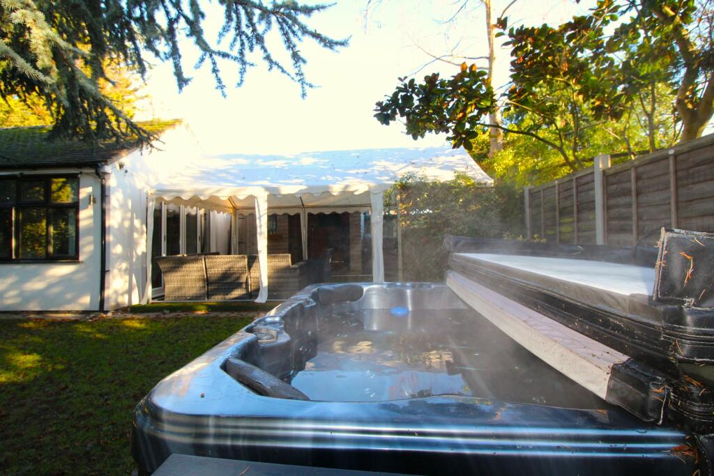 This three-bedroom detached bungalow in Rainham, Havering, offers a compelling proposition for buyers looking for a move-in ready home with significant outdoor space. The property’s location is convenient for families due to nearby well-regarded schools and its closeness to Rainham station. Transport links are decent, providing access to London. The interior features a modern kitchen and bathrooms, which are visually appealing and well-equipped. While the exact plot size is not given, it’s clearly a substantial garden with a range of amenities for outdoor living, including a bar, hot tub, and ample space for entertaining. There’s parking on the driveway for up to 5 cars. The property is well-presented and appears to have undergone recent modernisation, making it an attractive option for families or those seeking a comfortable and well-equipped home in a good area. Note that confirmation of the plot size, a complete survey of the structural integrity of the property, and further comparative market analysis to confirm the price accuracy, are necessary before making a purchasing decision.