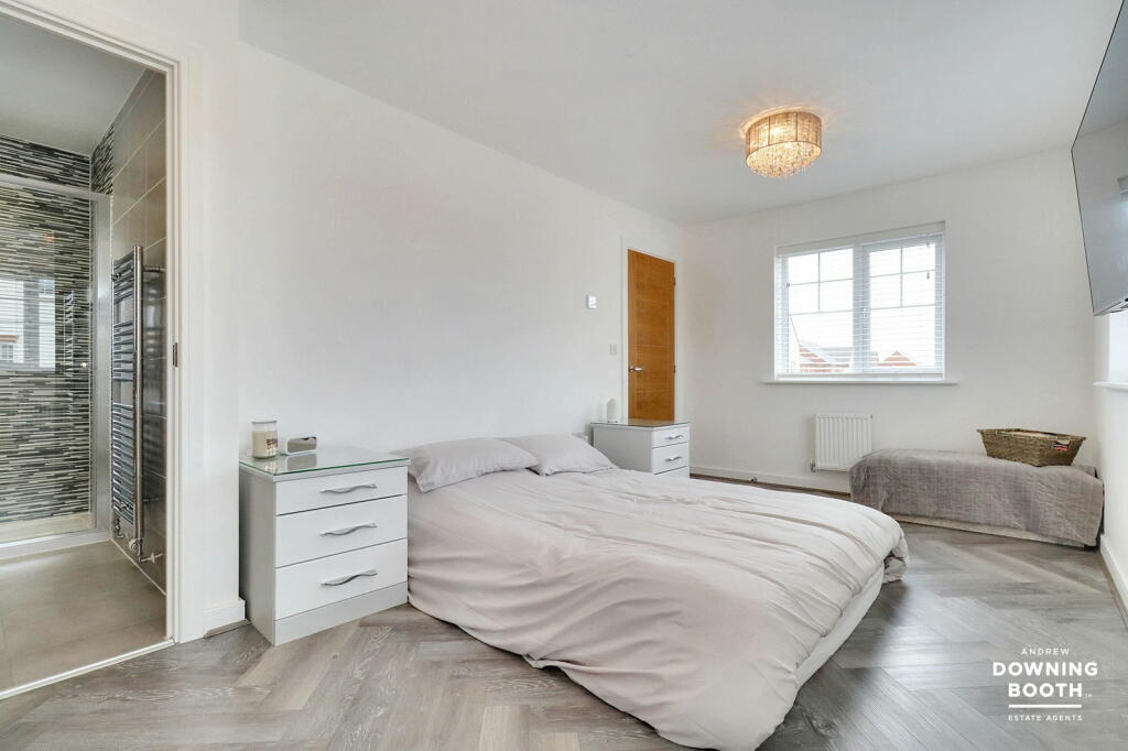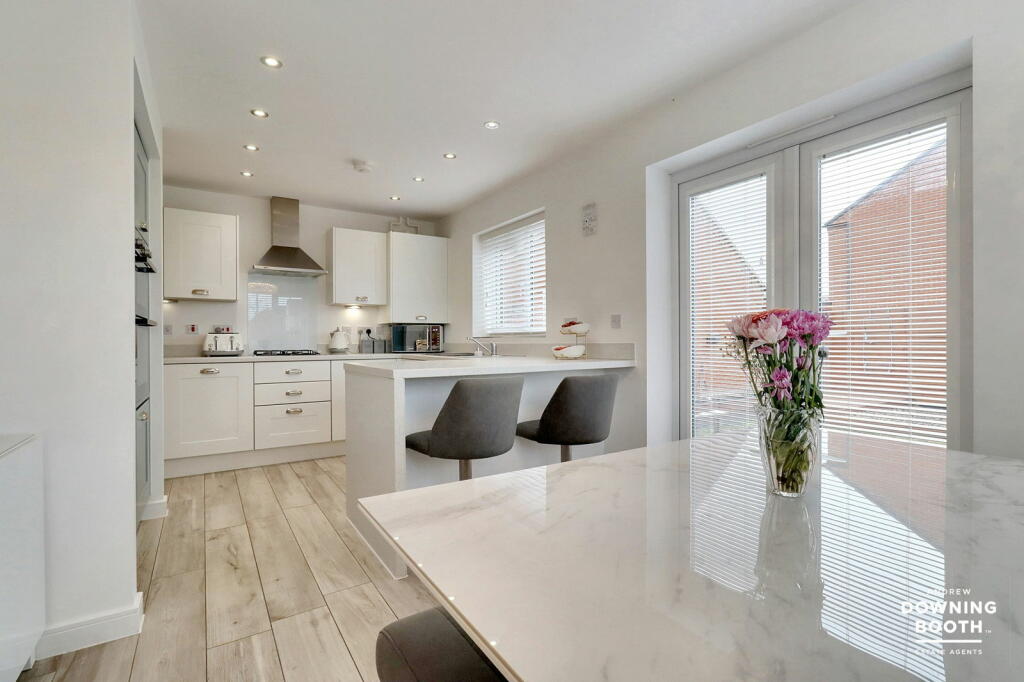 This four-bedroom, two-bathroom detached house in Fradley, Lichfield, is presented in immaculate condition. The property boasts a modern design and finish, apparent in the high-quality fixtures and fittings seen in the provided images. The interior is bright and airy, with an open-plan living area ideal for modern family living. The kitchen is well-equipped and contemporary. The property’s presentation strongly suggests it could be a new build or recently extensively renovated.