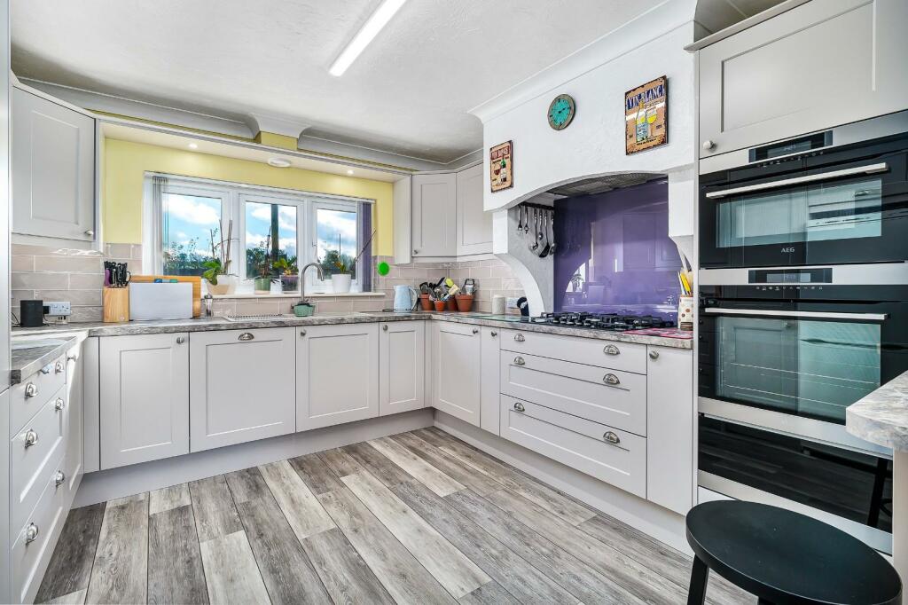 This five-bedroom detached house in Kedington, Suffolk, presents a comfortable family home with a blend of traditional and modern features. The property boasts a spacious layout, including a well-equipped kitchen which has undergone recent upgrades, multiple living areas, and five bedrooms, two bathrooms and a substantial amount of storage. The presence of a wood-burning stove adds a cozy touch and is useful given the location and potential for colder weather.