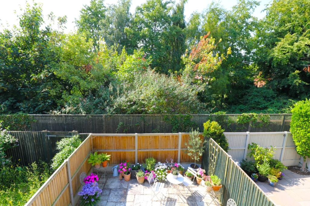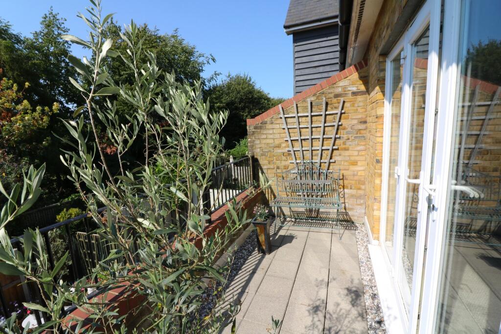 A short walk over the river and you are in the heart of the town - Overlooking the pond, featuring a sunny aspect rear garden and secluded balcony for relaxing on those sunny summer evenings with a glass of your favourite tipple - Two double bedrooms - Parking and garage - En-suite & shower room.