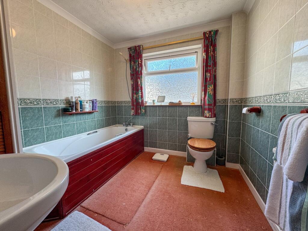 The property is a detached bungalow with four bedrooms and two bathrooms. The images show a property that is well maintained and presented. The interior shows a traditional style with some modern updates. There is a garden, and the property also has a garage and shed.