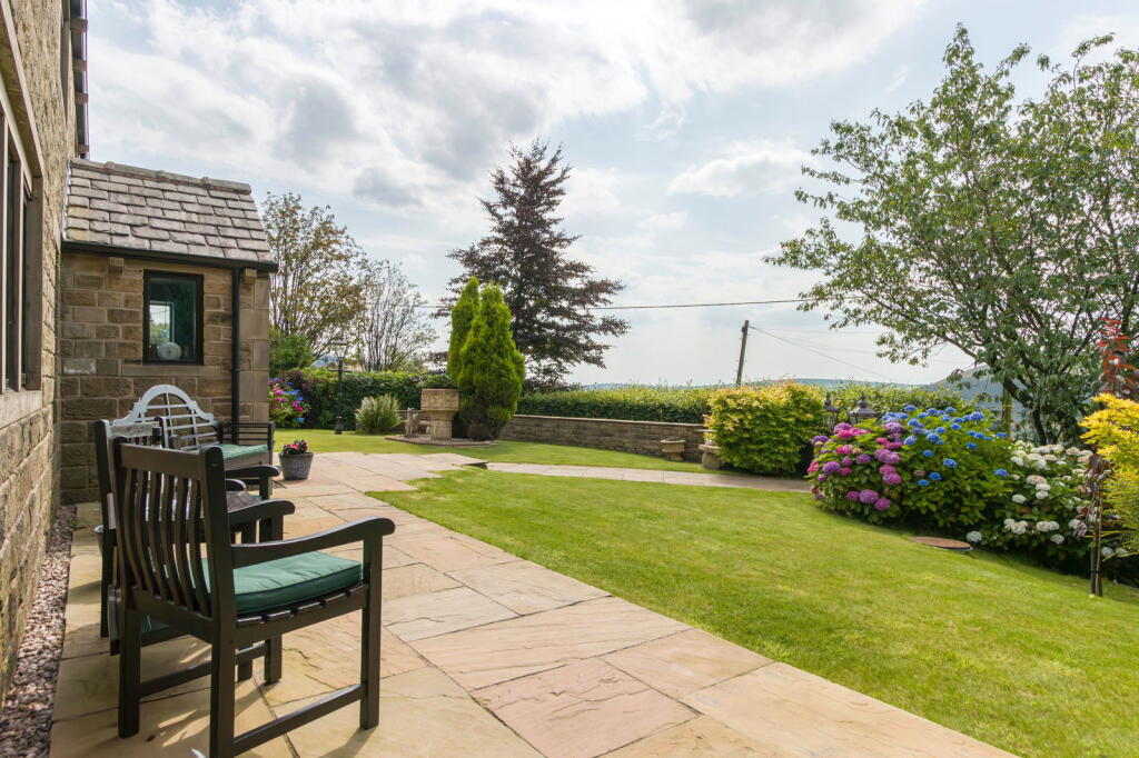 Sitting proudly above the Saddleworth village of Uppermill in a rural setting is ‘The Rowans’ built in 1999 in traditional style - a four bedroom detached family home which includes well balanced living accommodation throughout. Meticulously manicured gardens wrap around the home w...