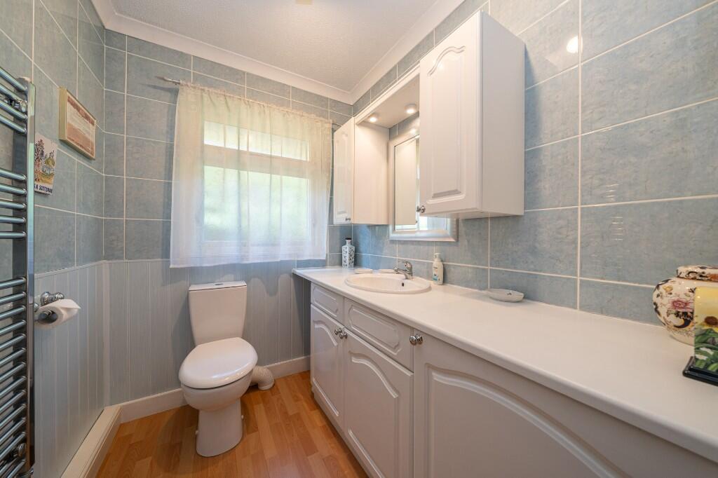 This is a detached bungalow located in Woodland Rise, Studham. The property features four bedrooms and two bathrooms. While the square footage is not provided, the property sits on a generous plot. The property benefits from a large garden and a patio area. The interior of the property would benefit from modernisation.