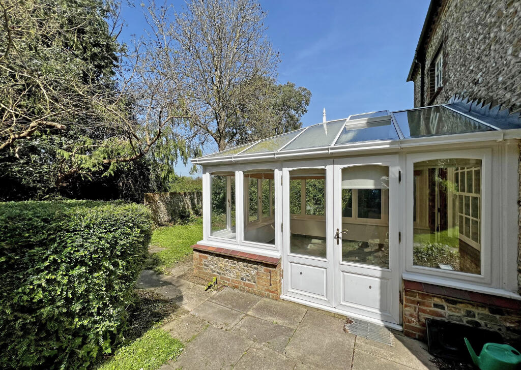 A substantial attached Grade II Listed Georgian house of elegant proportions with impressive accommodation, with period features, located on edge of a desirable village, close to countryside, set in lovely south facing gardens of about 0.4 acres