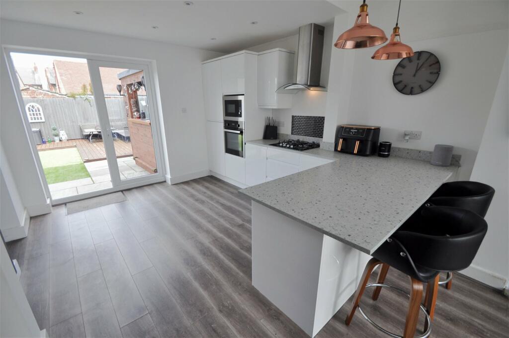 This three-bedroom semi-detached house situated on Broadway Avenue, Wallasey presents a compelling proposition for potential buyers. The property has clearly undergone a substantial refurbishment, resulting in a modern, well-presented interior. The contemporary kitchen with open-plan living area is a key highlight, offering a desirable living space. The updated bathroom is stylish and well-equipped. All the bedrooms appear well-sized and well-maintained. The house’s exterior is clean and tidy, and there is an apparent emphasis on kerb appeal. A significant draw is the rear garden. Featuring a generous lawn, extensive decking, a hot tub, and a custom-built bar, the garden adds substantial value and offers a unique selling point, potentially transforming the outdoor area into a sophisticated entertainment space. The property’s location in Wallasey offers a reasonable compromise between proximity to amenities and a calmer residential environment. Local schools are well-regarded, and access to public transport is readily available. Overall, this property presents a blend of contemporary appeal and practicality and is well-suited to a family or those seeking a move-in-ready home that demands little further financial commitment. Potential purchasers should, however, independently verify the property’s square footage and conduct necessary surveys before making an offer. Given the absence of precise plot size information in the listing and the lack of details regarding specifics of any other important structural elements like the foundation, roof or wall systems a complete analysis cannot be performed.