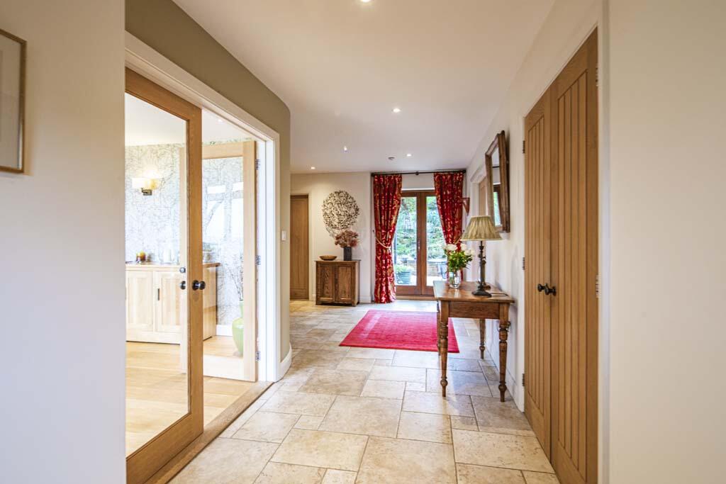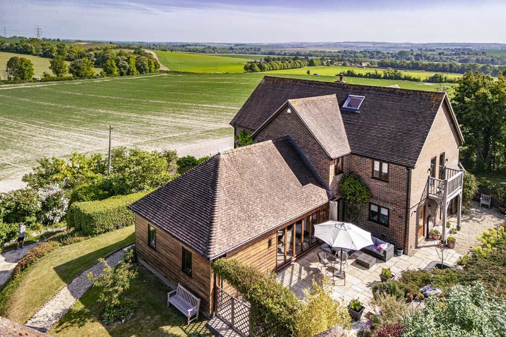 Built in 2006 a stunning property, architect designed to the highest of standards and incorporating floor to ceiling oak and glass at the front. Detached double garage with 5th bed accomm above. Grounds of just over half an acre with access to National Trust Land.