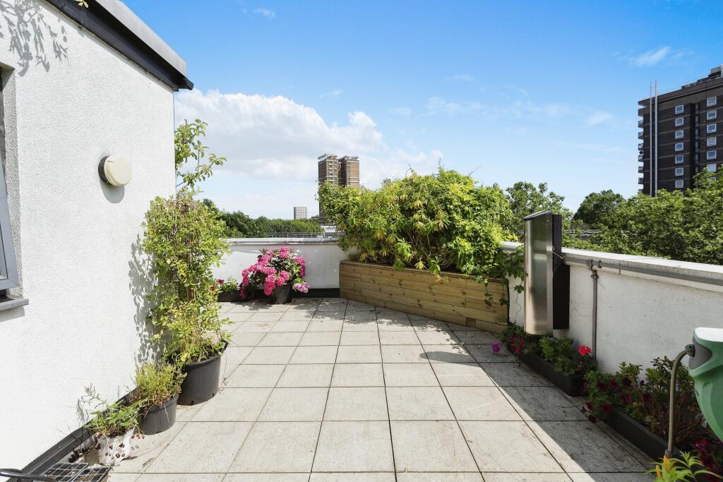 This penthouse on Hackney Road offers a blend of modern living and urban convenience. The property features three bedrooms, two bathrooms, and a spacious roof terrace with a well-maintained garden. The location provides easy access to transportation, schools, and local amenities. While the property is generally in good condition, some areas could benefit from minor updates. The list price is relatively high compared to the area’s average, which may impact its market appeal.